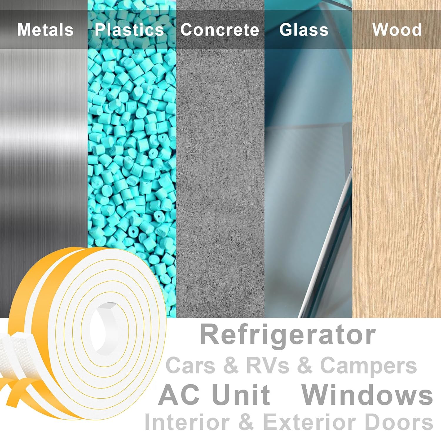 • 🟠WIDE APPLICATION-Trisiki's door seal strip is a tough, durable self-stick tape with minimal compression and can help prevent rattles, vibrations and squeaks. It's widely used as a weatherstrip, or as a gasket or to cushion and stabilize major appliances, such as doors, windows, furniture, electrical cabinets, speakers, toys, handicrafts, sports equipment, vents, air conditioners, plumbing, hvac. Plus, on cars, trucks and boats