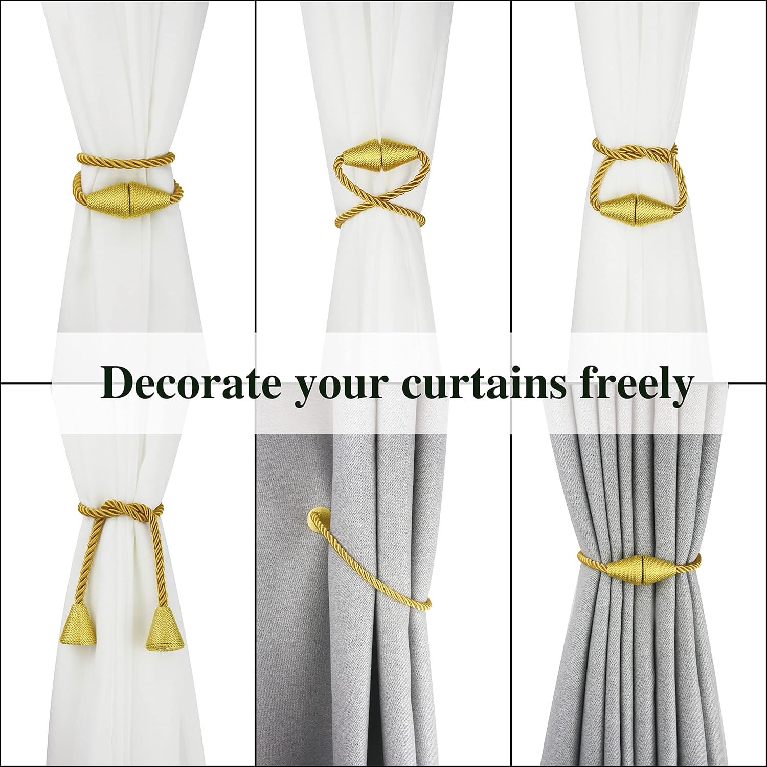 • Easy To Use- You can use different binding methods according to your preferences. The magnets are strong enough to keep holding the curtain. Conical shape curtain tiebacks adding a modern beauty to your windows.