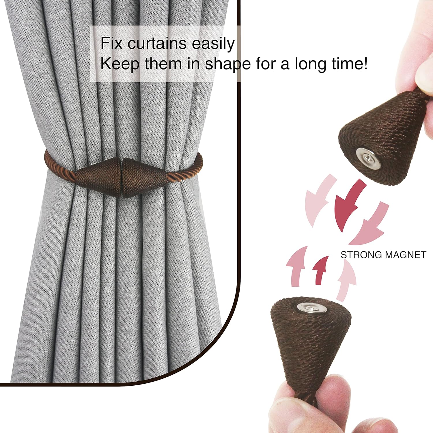 4 Pack Magnetic Curtain Tiebacks Rope Modern Handmade Curtain Tie Backs Decorative Drapes Weave Holdbacks for Window Décor, Coffee
