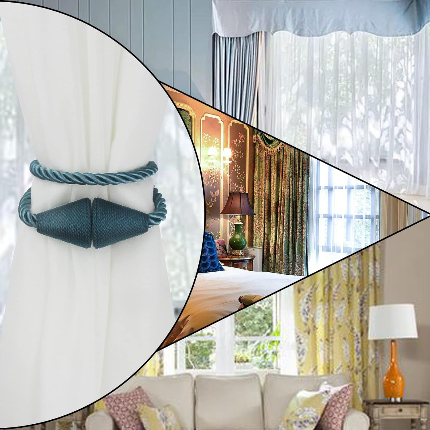 6 Pack Magnetic Curtain Tiebacks Rope Modern Handmade Curtain Tie Backs Decorative Drapes Weave Holdbacks for Window Décor, Blue