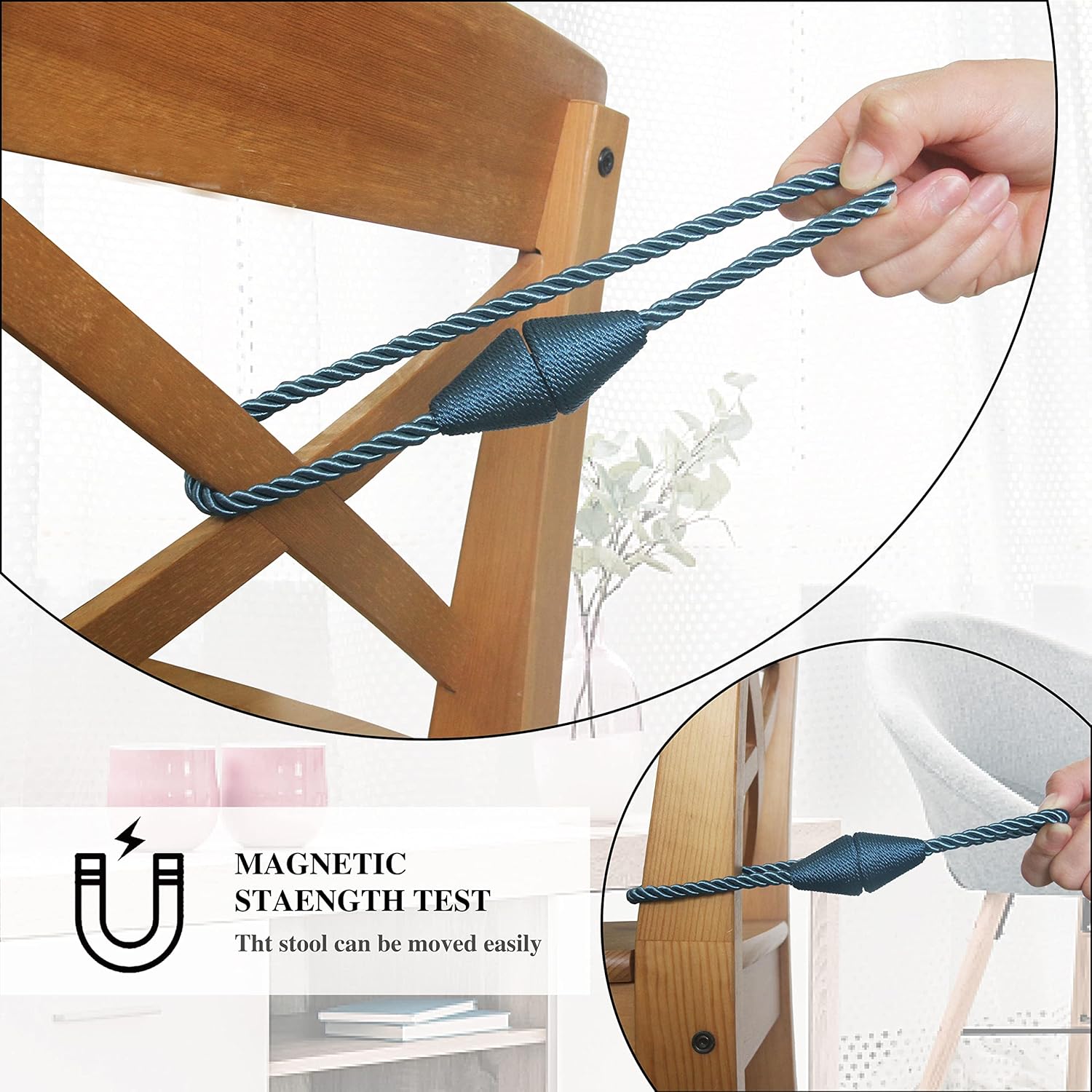 4 Pack Magnetic Curtain Tiebacks Rope Modern Handmade Curtain Tie Backs Decorative Drapes Weave Holdbacks for Window Décor, Blue