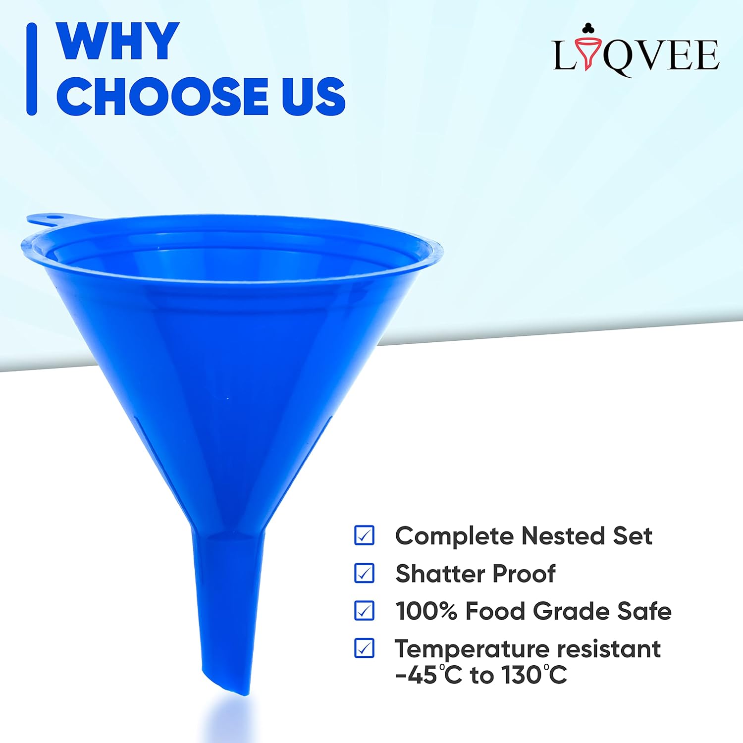 • Space-Saving Design: Our kitchen funnel set is designed to save space. The colorful, stackable design ensures easy storage, making it ideal for small kitchens and garages. Keep your plastic funnels handy for any kitchen or automotive use.
