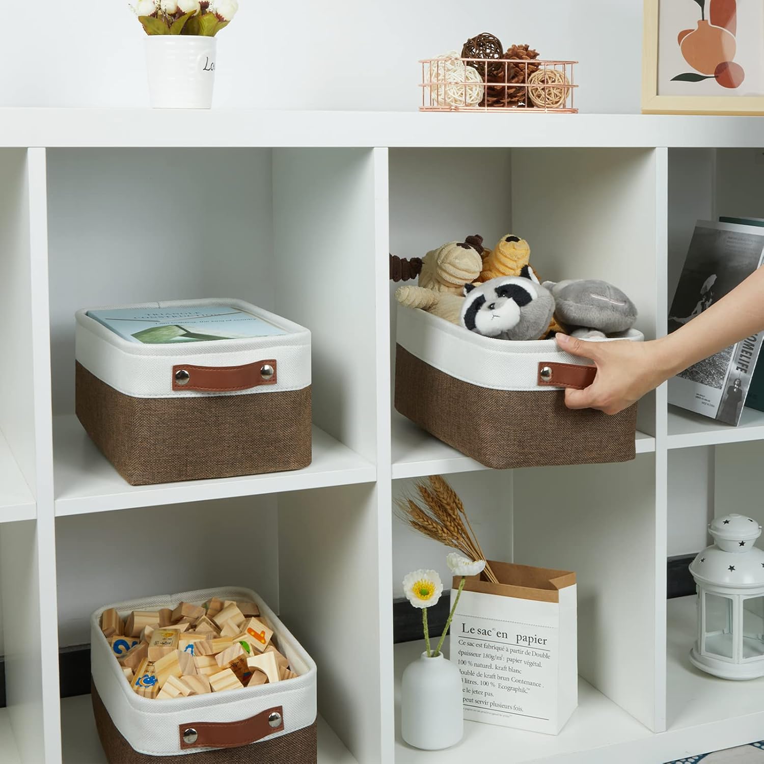 • 【HNZIGE Exclusive Fabric Basket Set】Set includes 6 small baskets(11.8" x 7.8" x 5.1"). There are leather handles on both sides, perfect for use as brown decorative storage baskets. These shelf storage basket for shelves are a new and exclusive design for keeping clothes and household items in the order