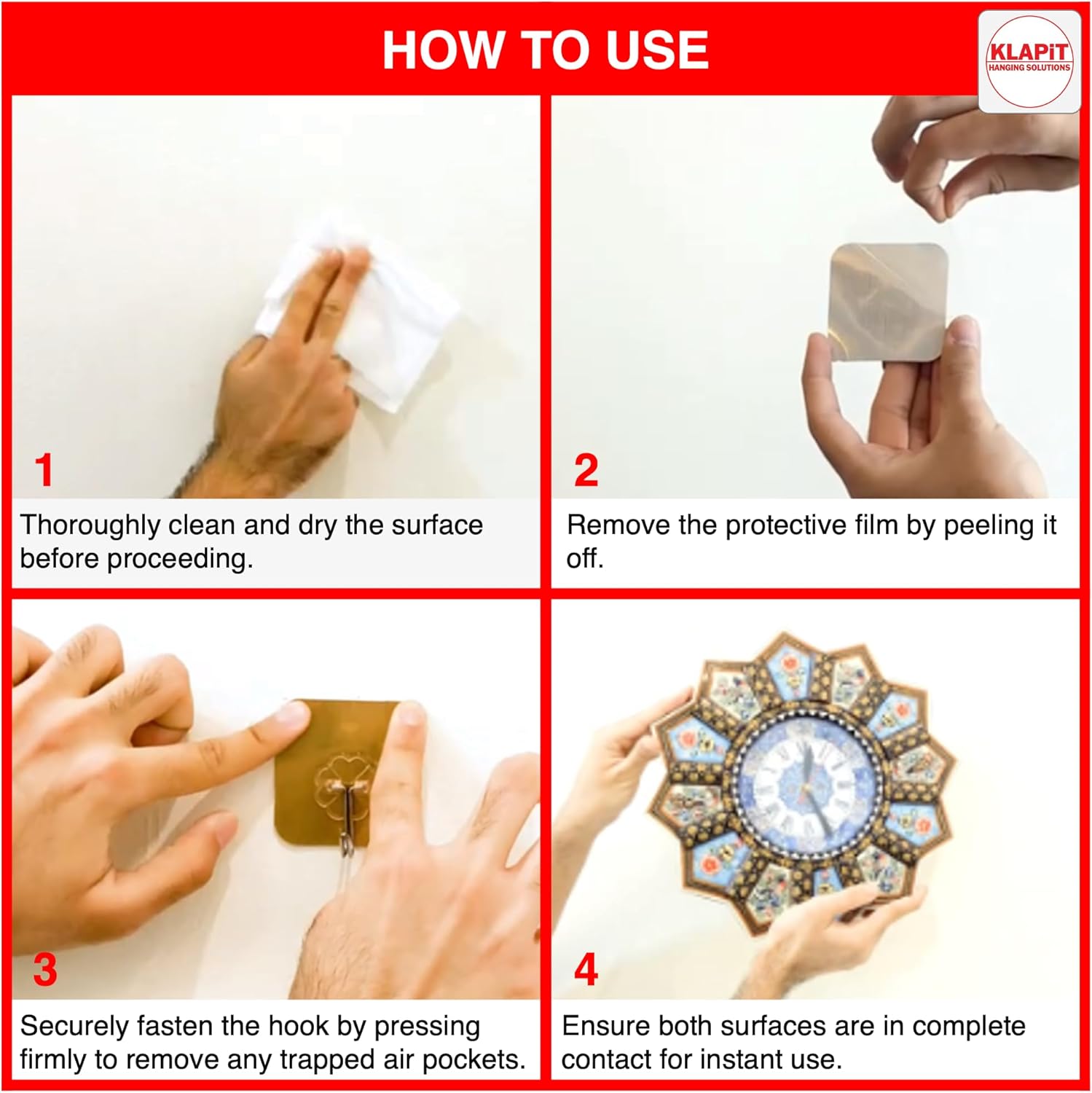 • Instant Use Technology: Skip the wait with KLAPiT SUPER HOOK’s Enhanced Nanotechnology adhesive. Simply apply to any surface and start hanging immediately—perfect for busy households.