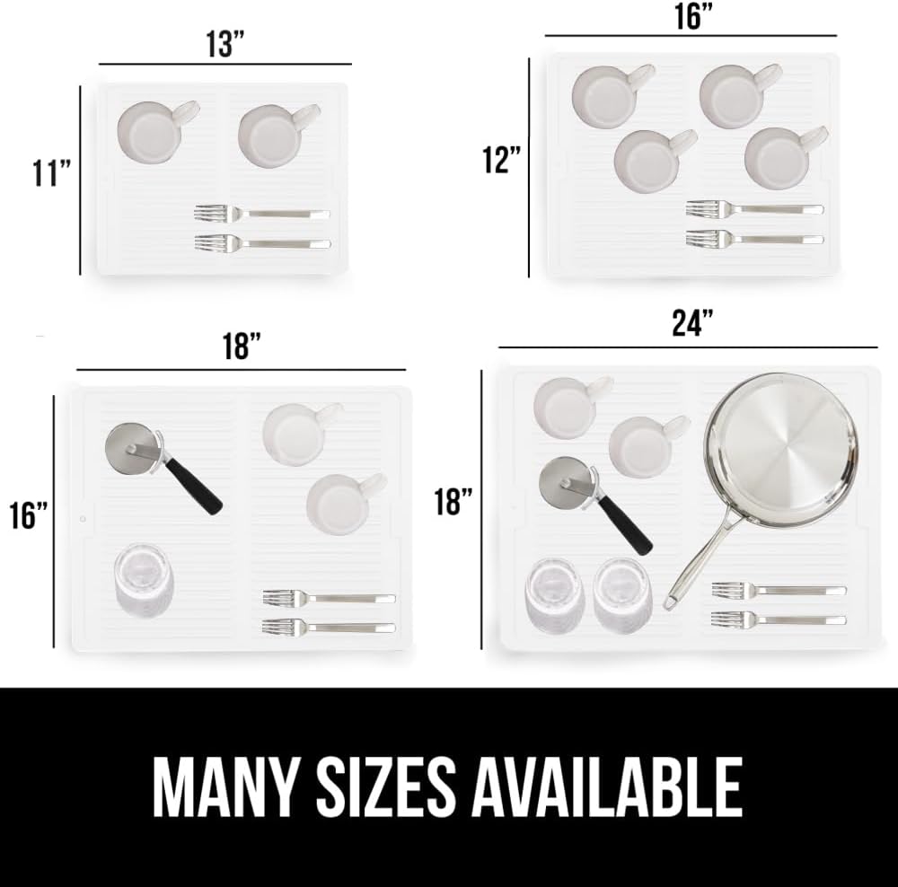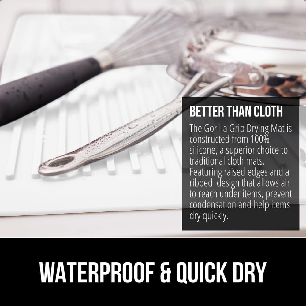 GORILLA GRIP 100% BPA-Free Patented Silicone Dish Drying Mat for Kitchen Counter, 18x24 Inch, Water Catching Ribbed Design, Easy Clean Waterproof Sink Liner, Heat Resistant, Fits Under Rack, White