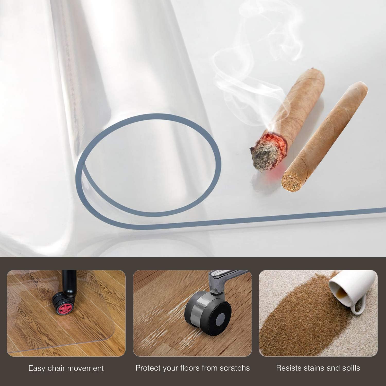 • THICK & DURABLE- The desk chair floor mat is 0.12 inch thick and rolling chair will not make indentations on the desk chair mat. The computer chair mat is the perfect thickness for your home or office. Good quality makes the office floor mat last for years.