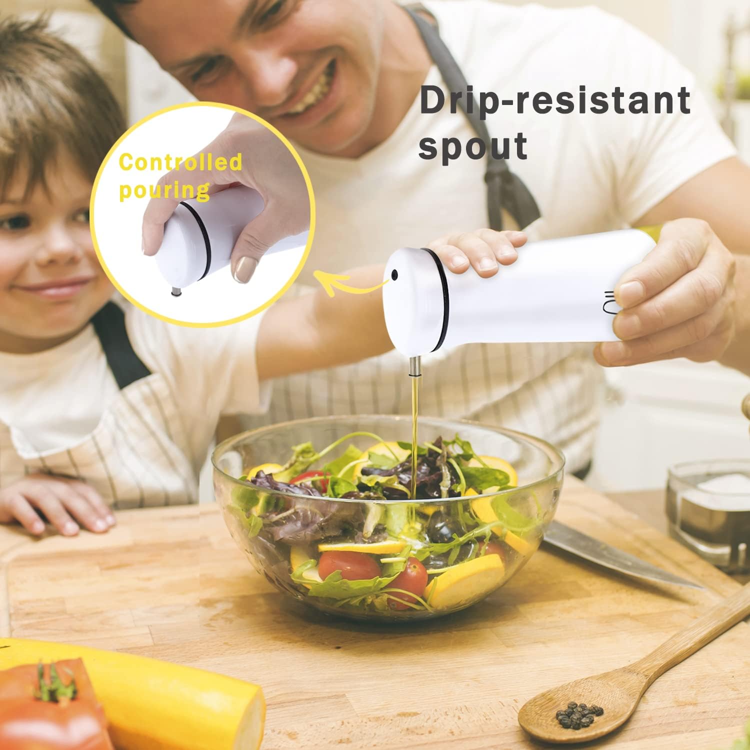 • No-Drip Oil Bottle: Thanks to the functional design of the oil mouth, no more dripping from the mouth. The non-drip feature of the oil vinegar dispenser ensures that your kitchen stays clean.