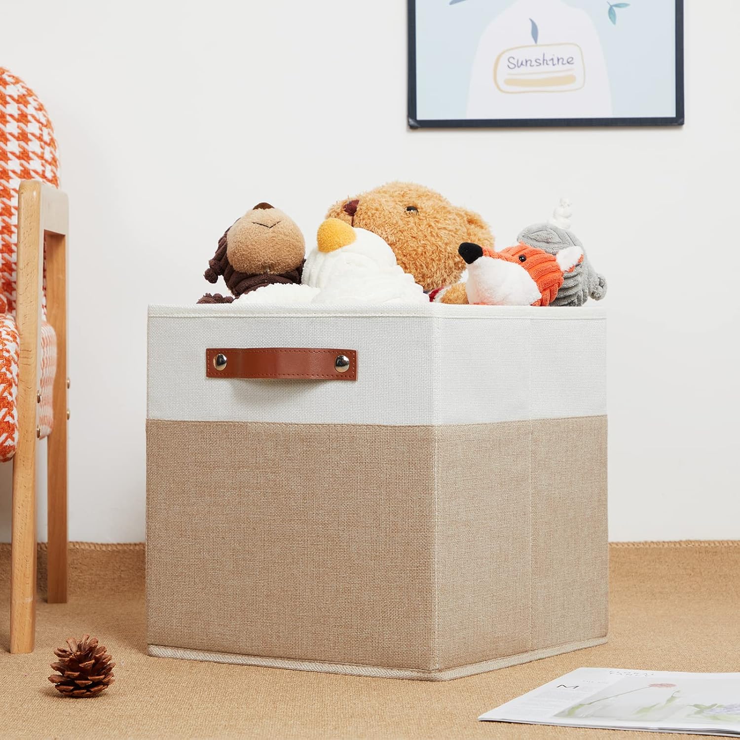 HNZIGE Fabric Storage Cubes, Cube Storage Bins 12 x 12, Set of 4, Decorative Storage Baskets for Shelves with Handles,Foldable Bins for Cube Shelf Organizer Home Toy Nursery Closet(Beige White)