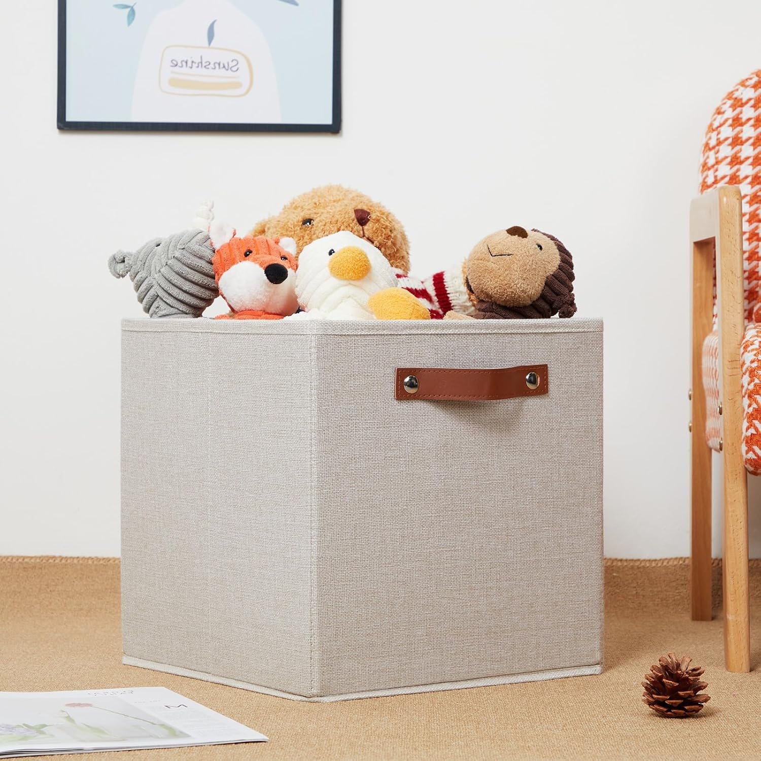 • 【Premium Material】The fabric used in the storage cubes 12 x 12 is fashionable and breathable, sturdy, breathable fabric materials and the cardboard inside is strong and easy to fold. These cream storage cubes for organizing are sturdy enough to hold your stuff well. The leather handle is durable and easy to carry. The product consists of cardboard, and in transportation, the cardboard will exist a little cardboard smell, you can use it before using the ventilation to dry it.