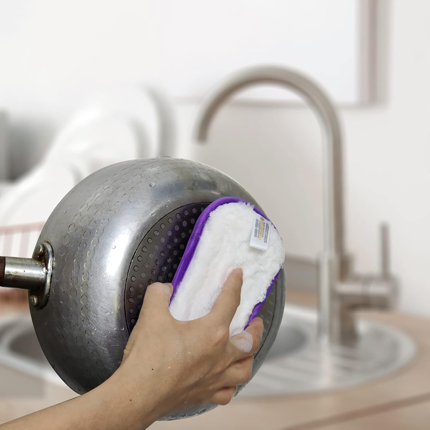 • ✅【Clean Smarter - Not Harder】The best of both worlds designed scrubber / cloth combo sponge - scrubbing away dirty or burnt food easily and Washing dishes Oil Nonstick.