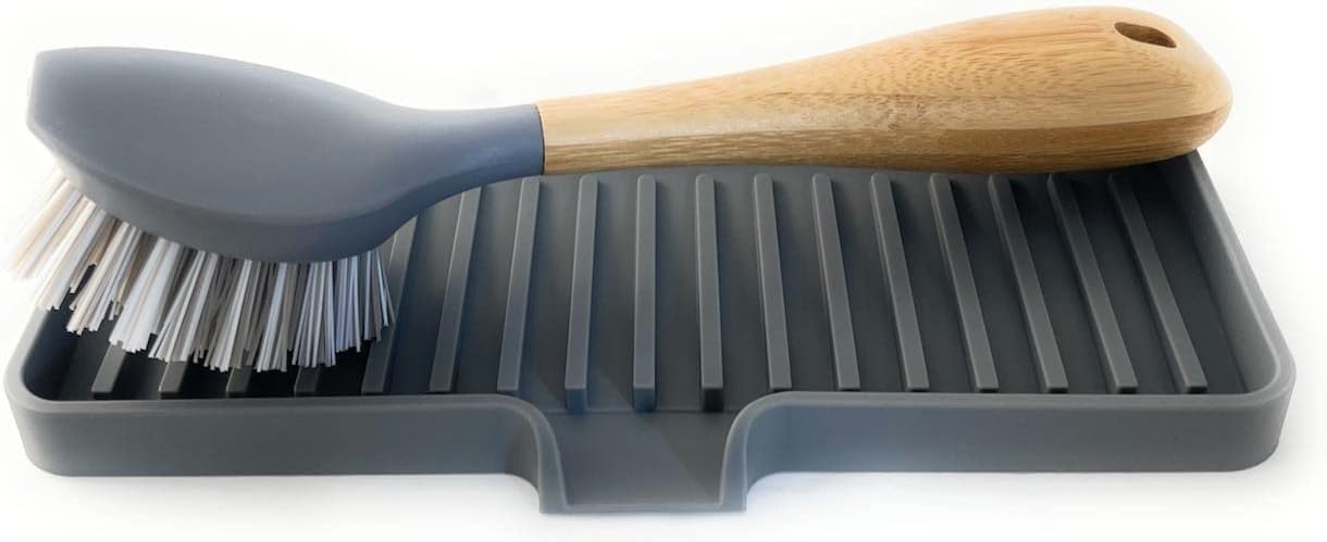 • A More Hygienic Home | A dedicated space for your dishwashing supplies, bathroom sink items, shower niche/shelf items. Tray and drain chute are slightly sloped to help funnel excess water away.Thick, sturdy base stays in place without suction while raised lines promote air flow, so items dry faster and are less prone to developing nasty odors.