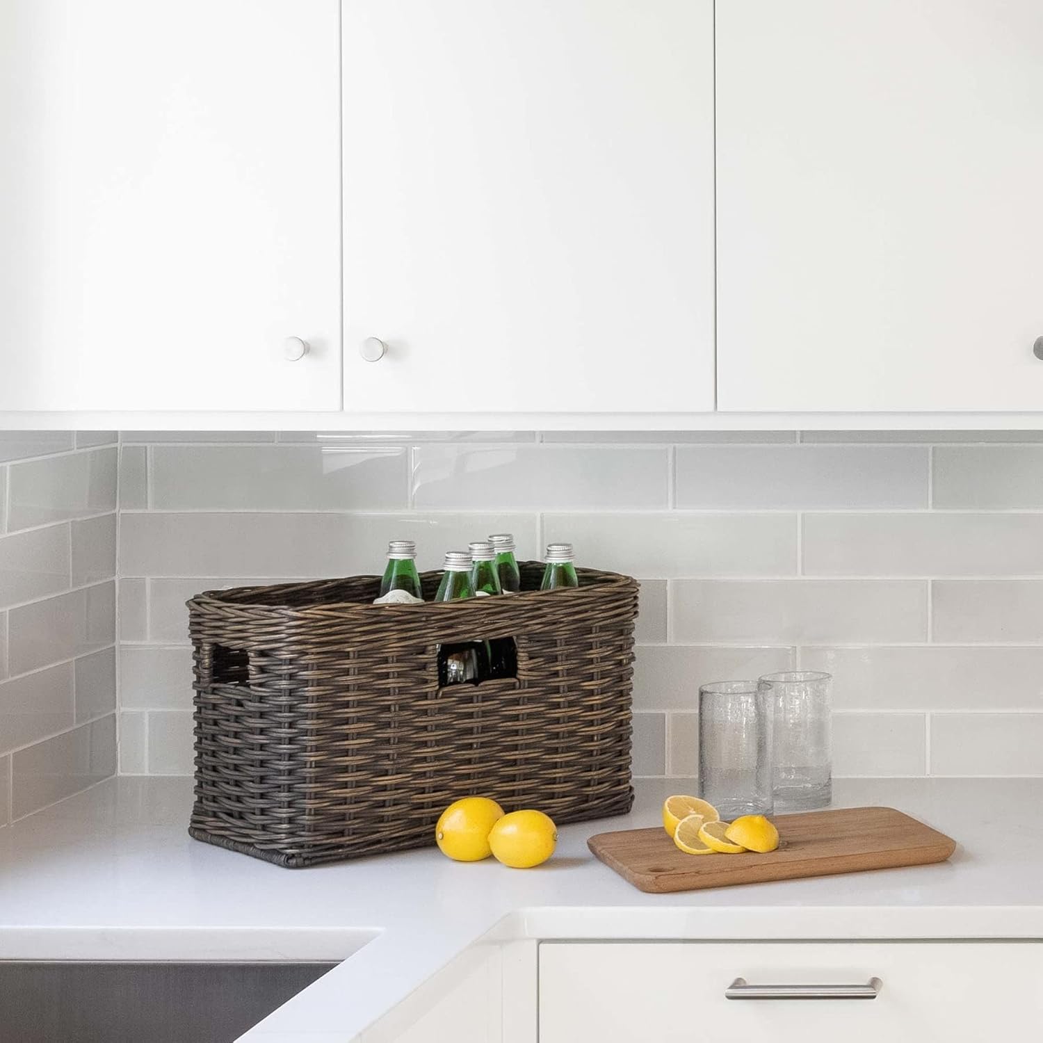 The Basket Lady Tall Rectangular Wicker Storage Basket, Large, 22.5 in L x 16 in W x 12.5 in H, Sandstone