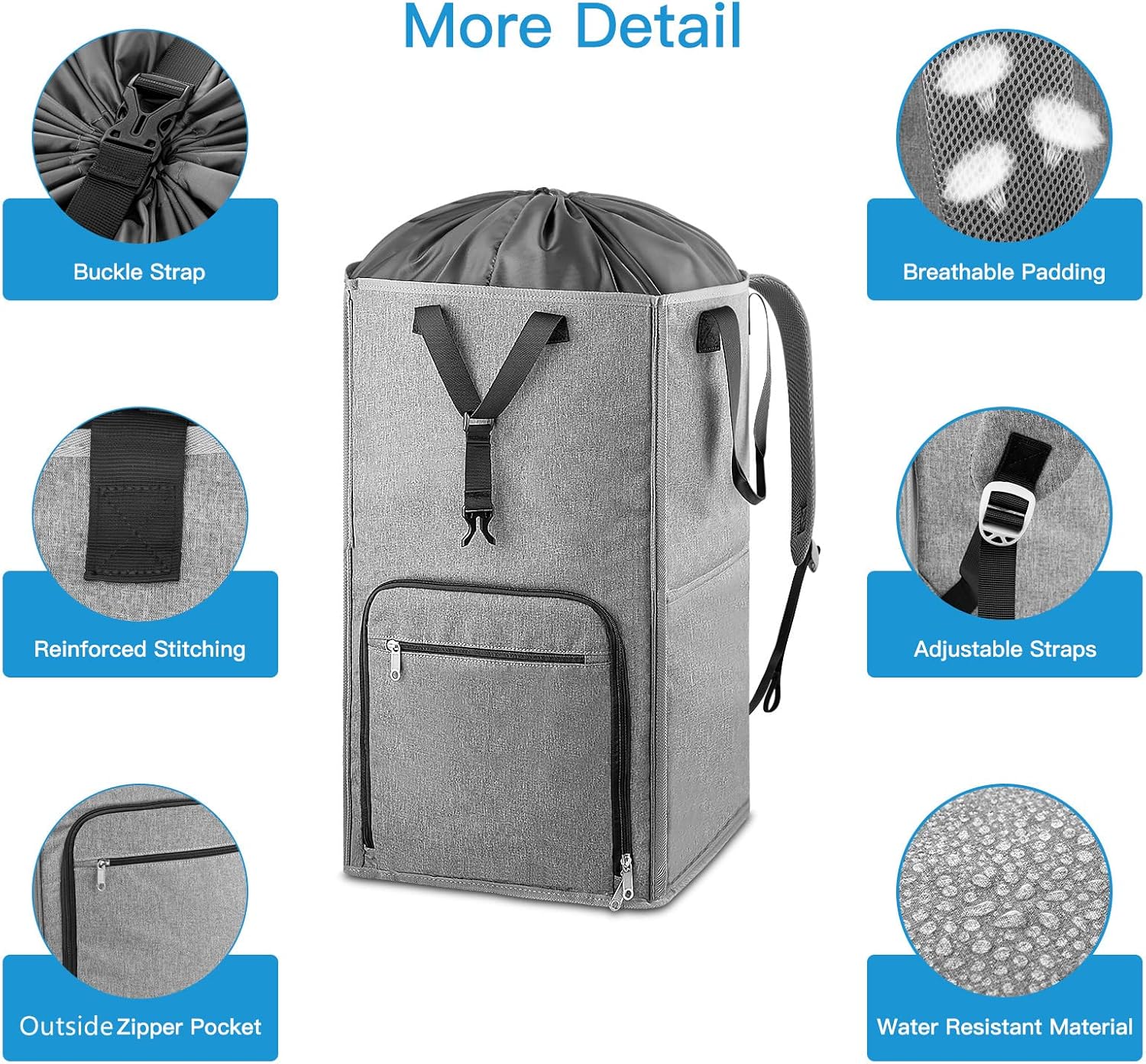 Laundry Backpack Bag, Bukere Extra Large 2 in 1 Laundry Hamper Basket for College Students Dorm Essentials, Adjustable Shoulder Straps, Freestanding Laundry Bag for Apartment, Laundromat, Travel