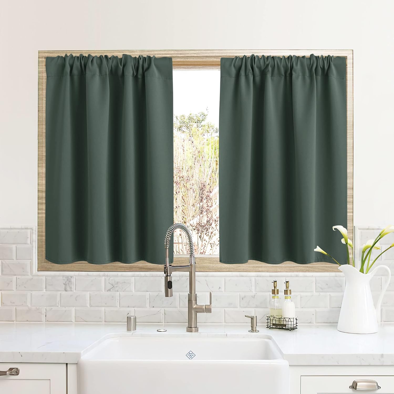 RYB HOME RV Camper Door Window Curtains -Blackout Privacy Curtains & Drapes for Bathroom Bedroom Kitchen Portable Travel Trailer Small Window Decor, W 34 x L 24, Dark Green, 2 Panels