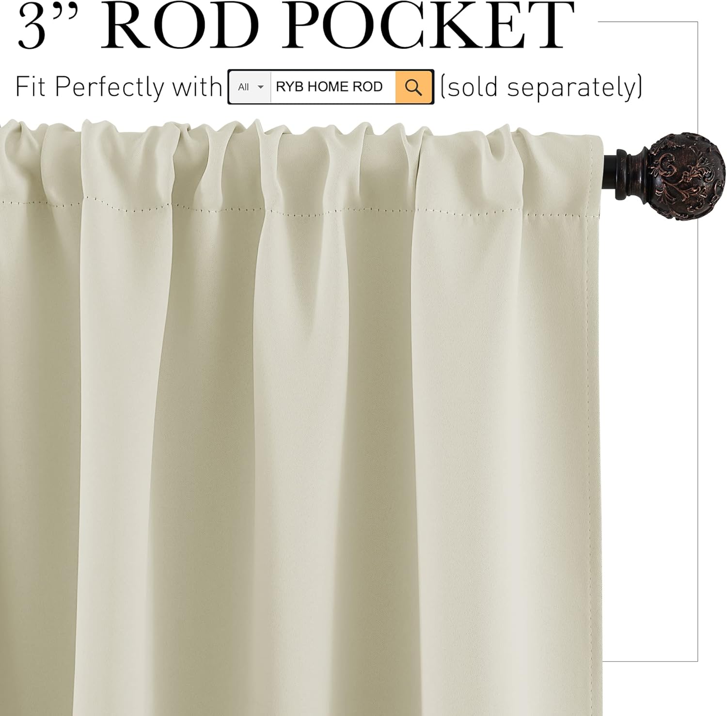 RYB HOME Bathroom Window Curtains - Super Soft Blackout Privacy Curtains for Baby Nursery Bedroom Basement Garege Workshop Kitchen Dining Living Room, W 29 x L 30, Beige, 2 Pcs
