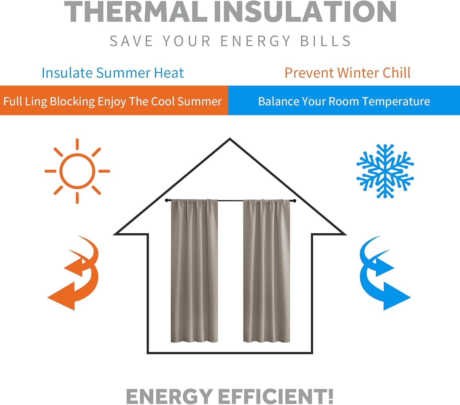 • LIGHT BLOCKING - Curtains block 85-95% sunlight and UV rays (Dark color works better) for maximum privacy and undisturbed sleep. Thermal property of the blackout curtains ensure that the room temperature is regulated. Protect your indoor furniture from directly exposing to the sun.