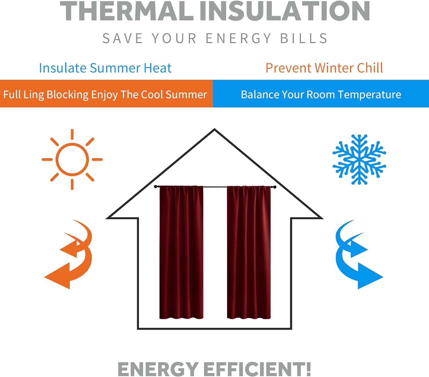 • LIGHT BLOCKING - Curtains block 85-95% sunlight and UV rays (Dark color works better) for maximum privacy and undisturbed sleep. Thermal property of the blackout curtains ensure that the room temperature is regulated. Protect your indoor furniture from directly exposing to the sun.