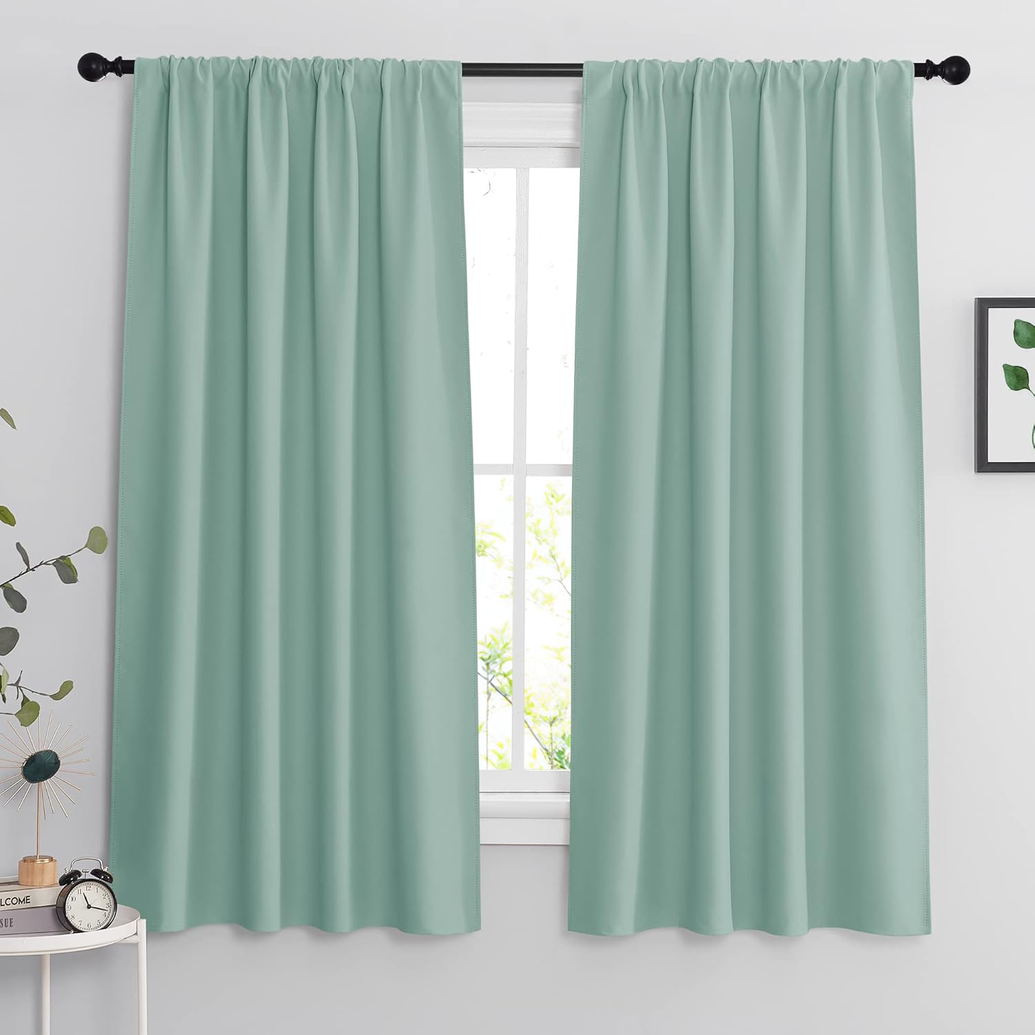 RYB HOME Rod Pocket Blackout Curtains for Living Room, Thermal Insulated Noise Reducing Window Drapes Room Darkening Shades for Bedroom Studio, 42 x 63 inch, 2 Panels Package, Aqua