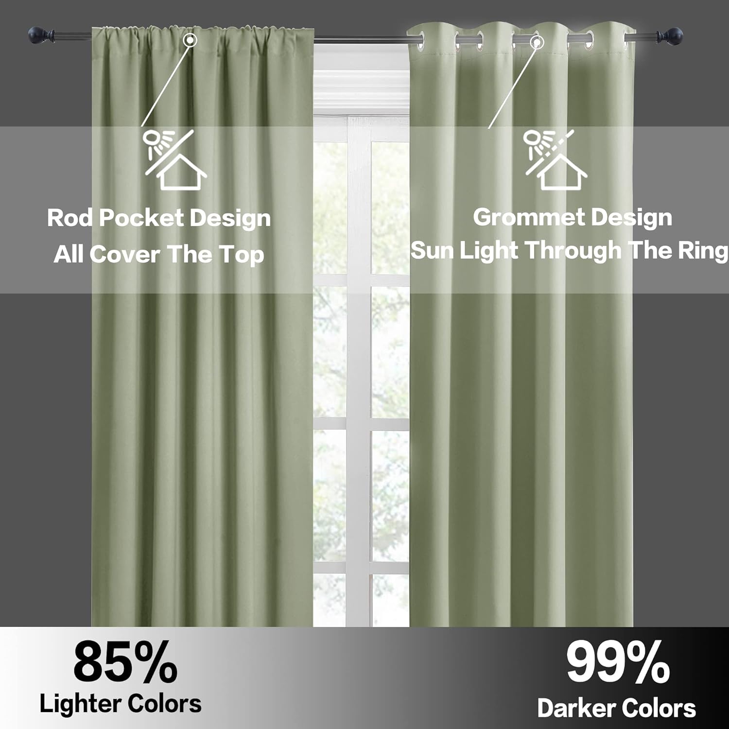 • LIGHT BLOCKING - Curtains block 85-95% sunlight and UV rays (Dark color works better) for maximum privacy and undisturbed sleep, which benefit from the innovative triple weave technology.