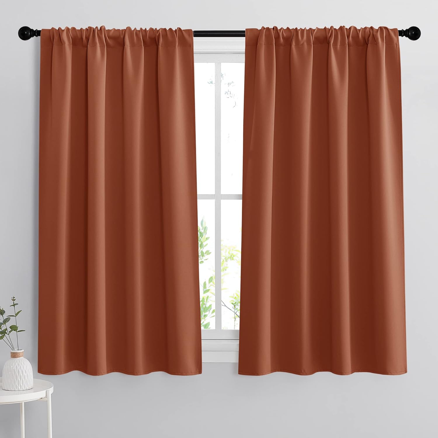 RYB HOME Room Darkening Curtains 54 inches Length, Blackout Window Curtains Drapes Energy Efficient Covering for Bedroom Dorm Glass Door, W 42 x L 54 inch, 2 Panels, Burnt Orange