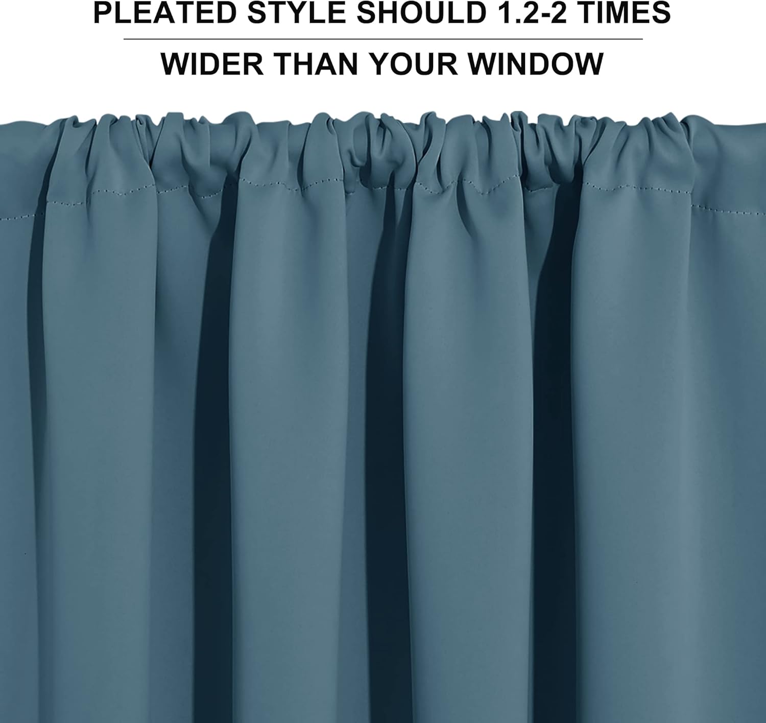 • READY MADE - Blackout curtains sold as 2 panels, each measures 42" width by 45" length. Curtains can cover windows to full width. The pleated style should be 1.5-2.6 times to your windows.