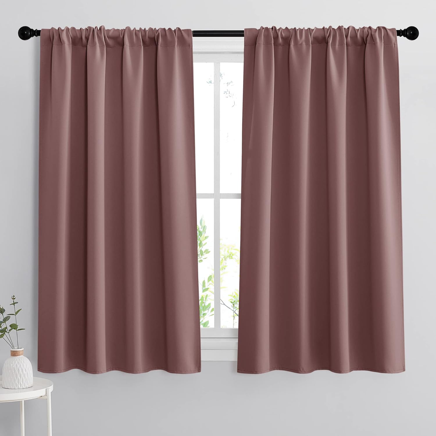 RYB HOME 45 inch Curtains for Living Room, Rod Pocket Thermal Insulated Small Window Drapes Room Darkening Shades for Bedroom Studio Closet, W 42 x L 45 inch, Set of 2 Panels, Wild Rose