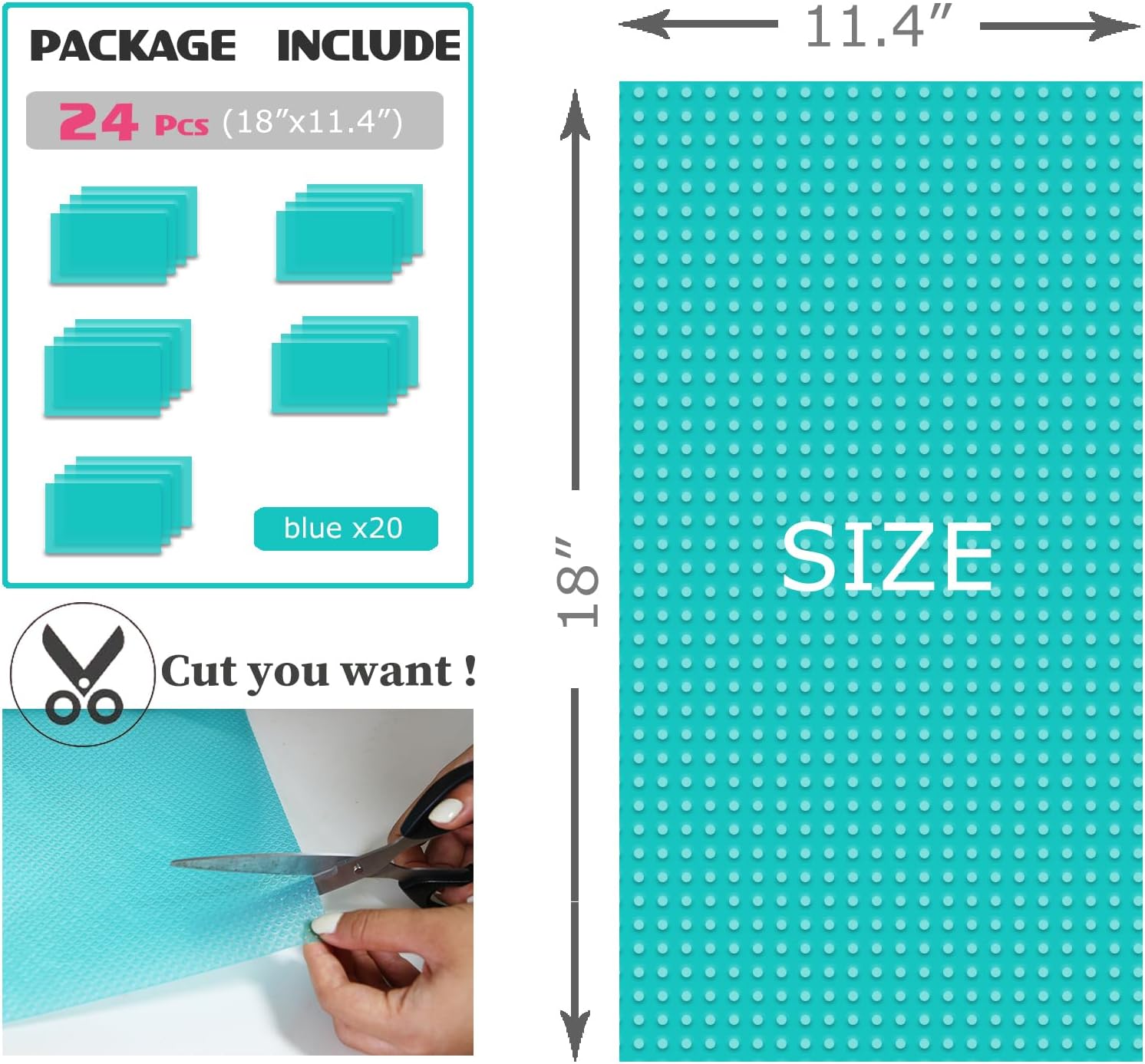24Pcs Refrigerator Liners, Washable Fridge Liner Mats Covers Pads for Glass Shelf Cupboard Cabinet Drawer Home Kitchen Accessories Organization (Blue)