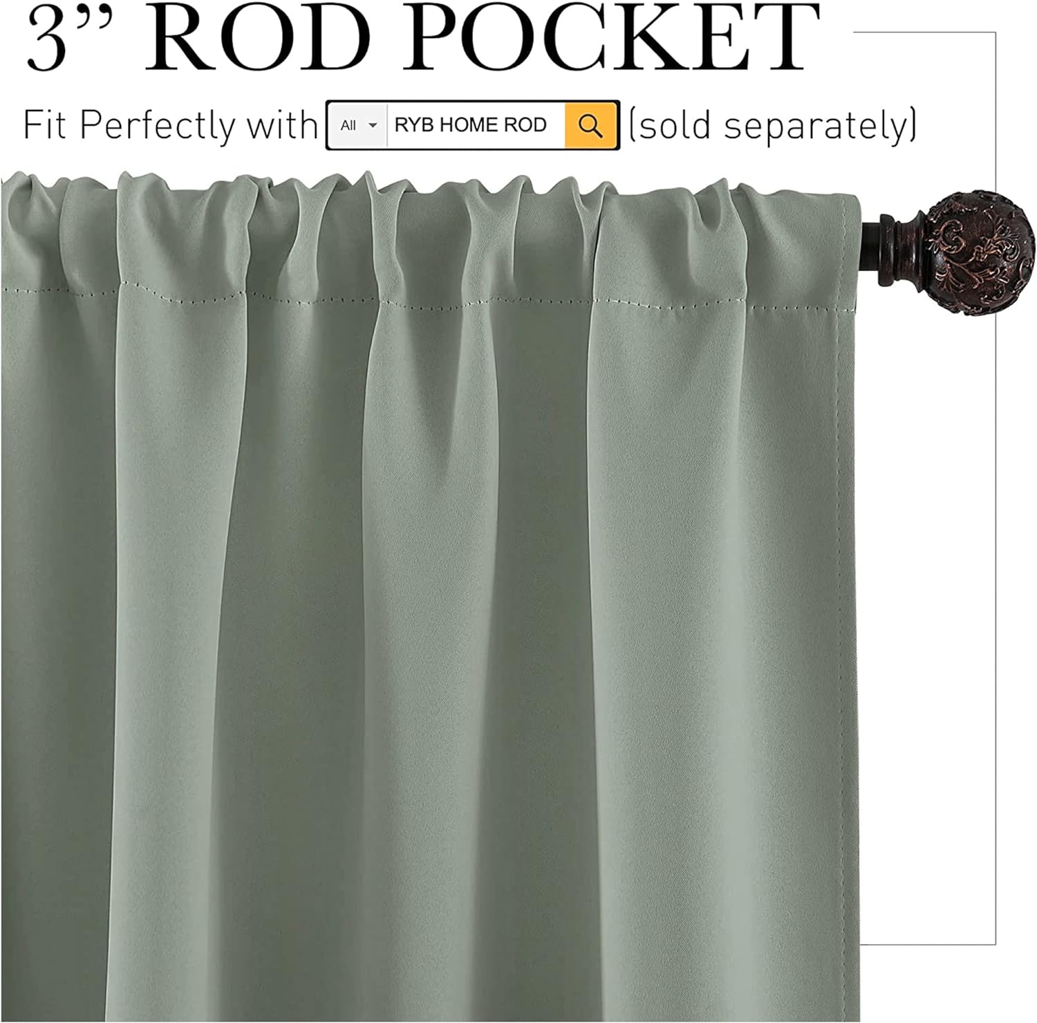RYB HOME Grayish Green Short Curtains Blackout, 30 inch Durable Cafe Curtains Room Darkening Window Drapes Privacy Protection for Basement Closet Kithen, W29 x L30 inch, 2 Panels