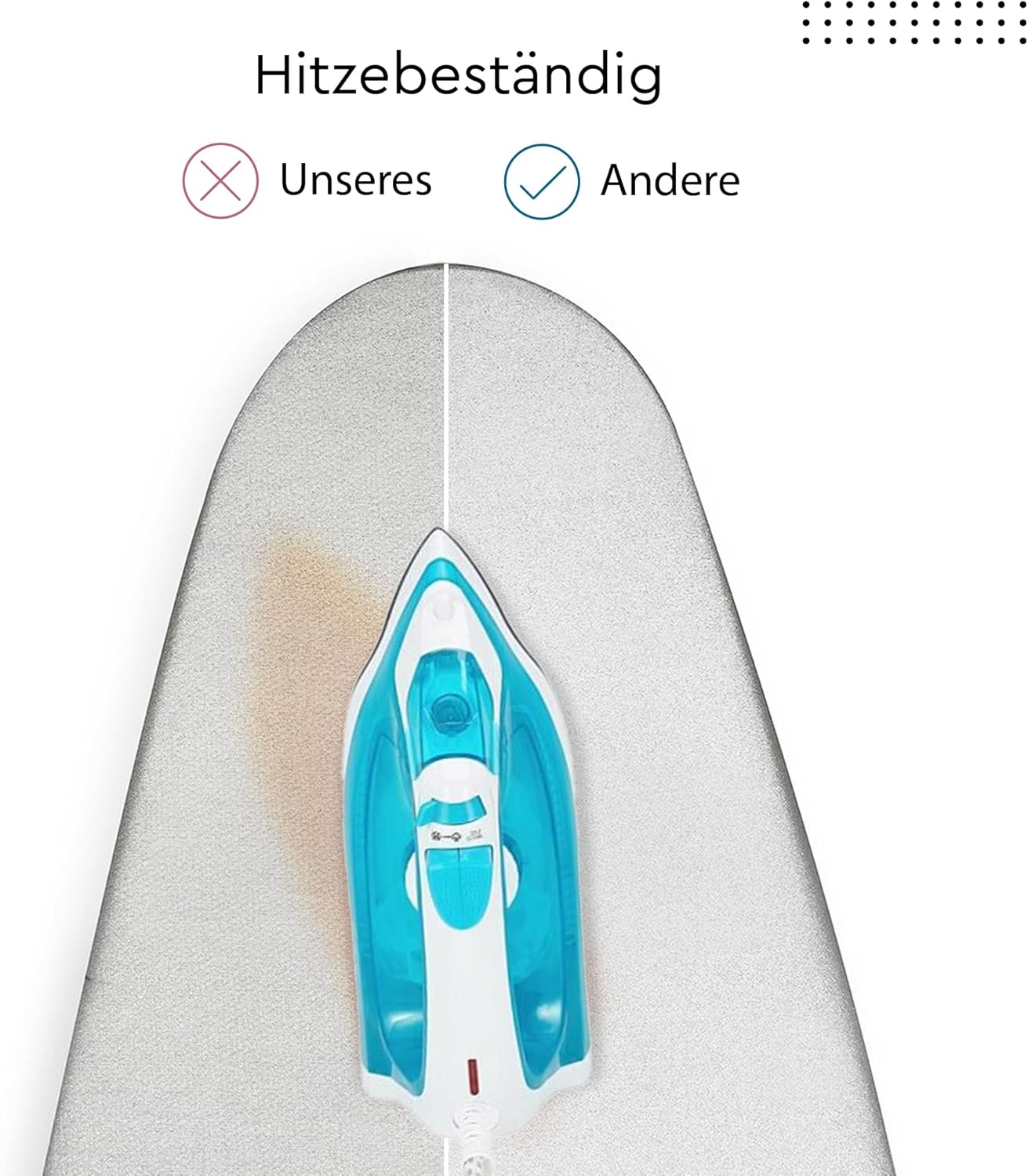 • SUPERIOR MATERIALS: 3 Layers of protective materials makes this cover into an ideal Ironing Board surface. Special Siliconised Silver coating on Cotton Fabric makes the surface smooth for ironing, reflects heat back into the garment, resulting in the fastest crease removal. This enables huge saving in ironing time and electricity. The Heat Proof Metallised coating can withstand very high Ironing temperatures even above 400* F / 220* C