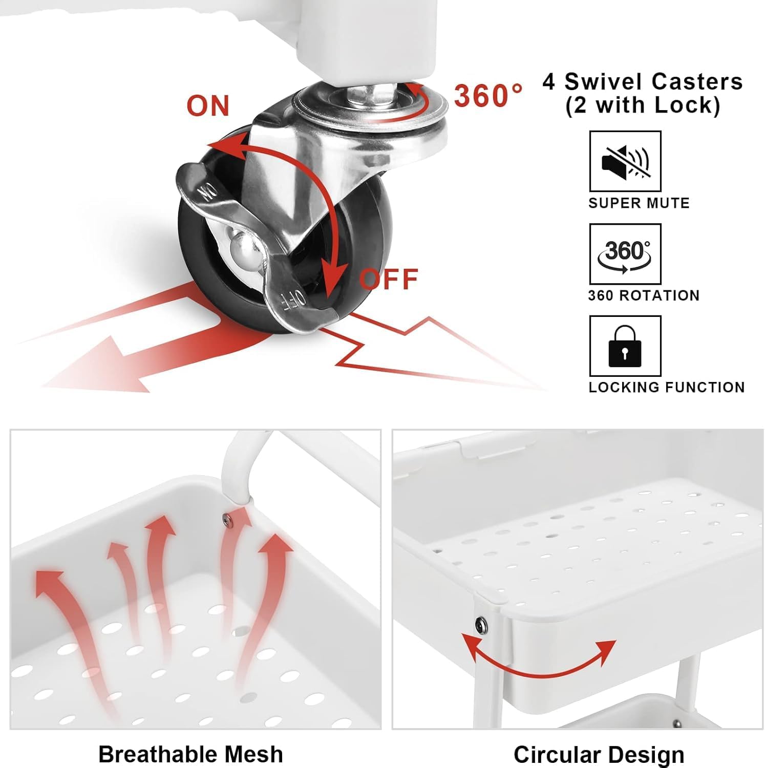 • Easy & Convenient to Move: This 3-Tier storage cart comes equipped with 4 wheels (2 lockable) and the handle design makes it easy & convenient to roll around to anywhere you need, or lock it in place.