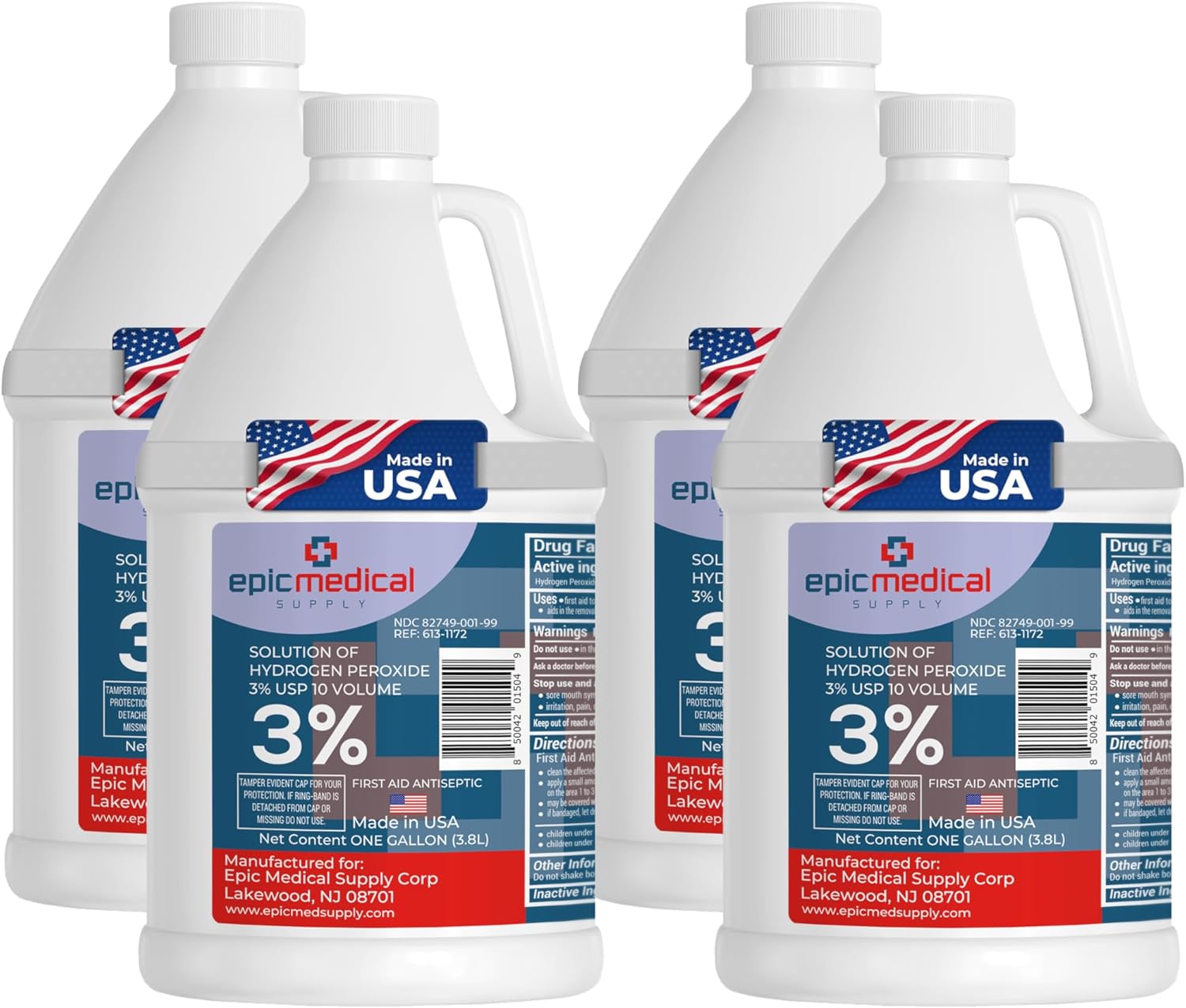 3% Hydrogen Peroxide - First Aid Antiseptic & Multipurpose Cleaner - Topical Wash for Cuts, Scrapes and Minor Cuts - H2O2 Hydrogen Peroxide 3 Percent USP Solution (4 Gallon)