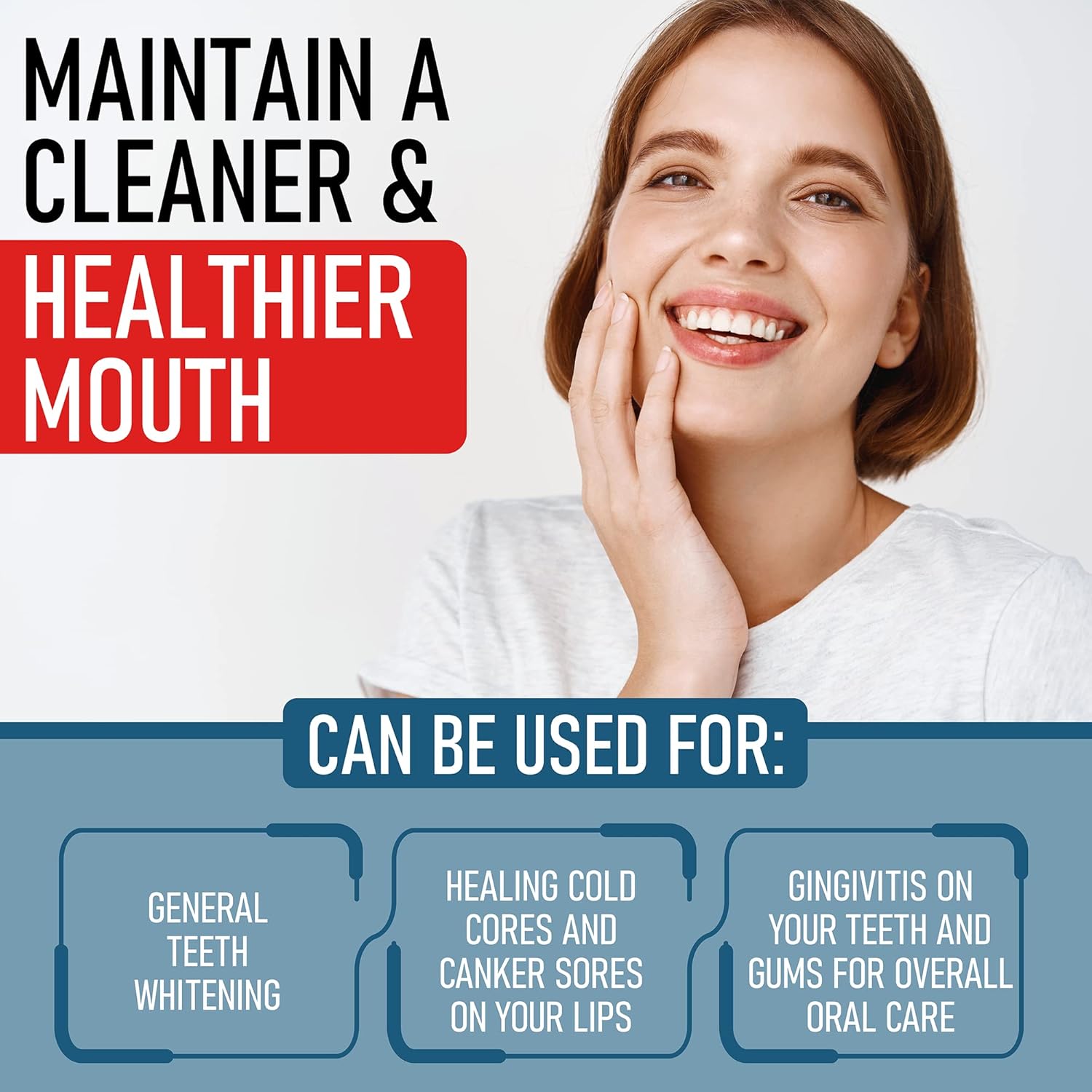 • Elevate Your Oral Health Regimen: Go beyond basic dental care with our 3% USP hydrogen peroxide. This multi-purpose solution is a game-changer for maintaining a healthy smile. Use it for teeth whitening to achieve a dazzling, confident grin. It's also effective in healing cold sores, canker sores, and addressing gingivitis, promoting comprehensive oral health.