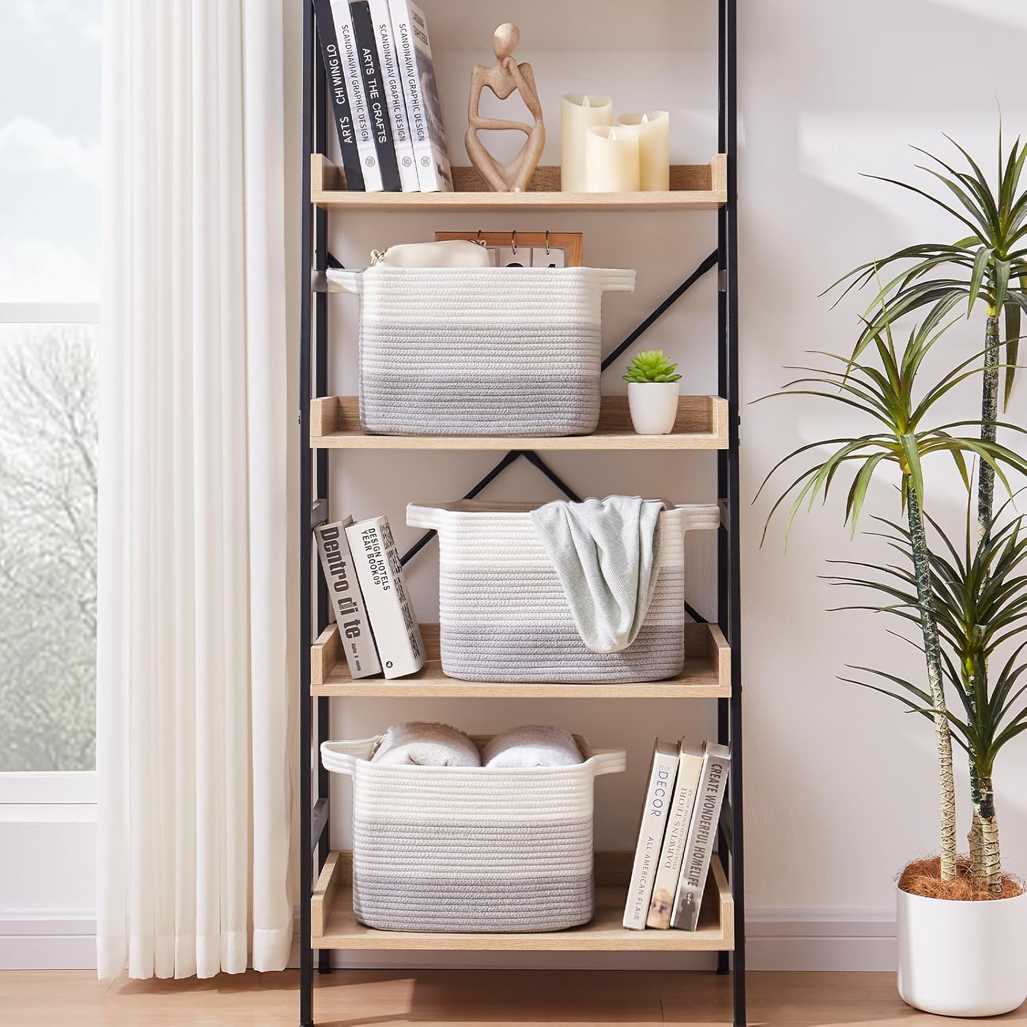 OIAHOMY Storage Basket, Woven Baskets for Storage, Cotton Rope Basket for toys,Towel Baskets for Bathroom - Pack of 3, Gradient Gray