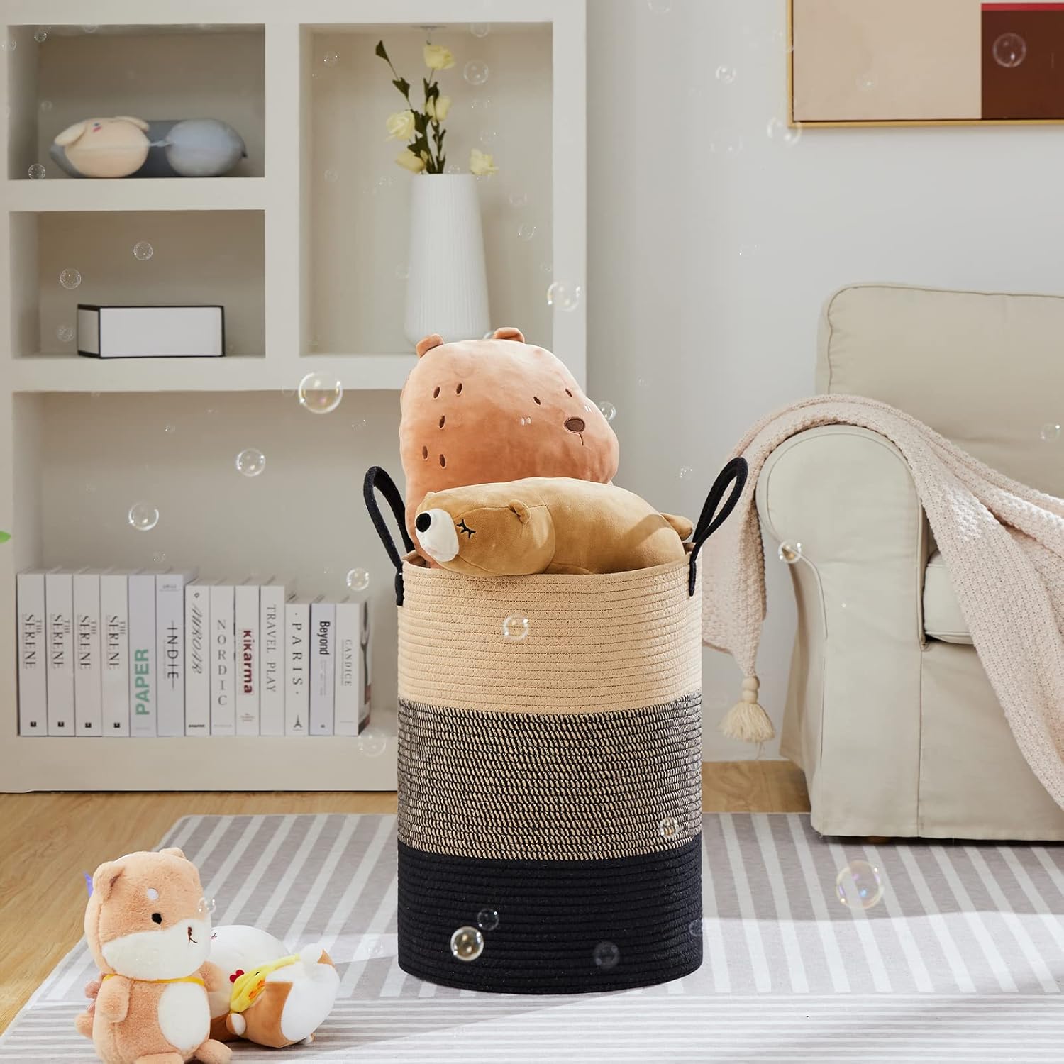 VIPOSCO Large Laundry Hamper, Tall Woven Rope Storage Basket for Blanket, Toys, Dirty Clothes in Living Room, Bathroom, Bedroom - 72L Brown & Black