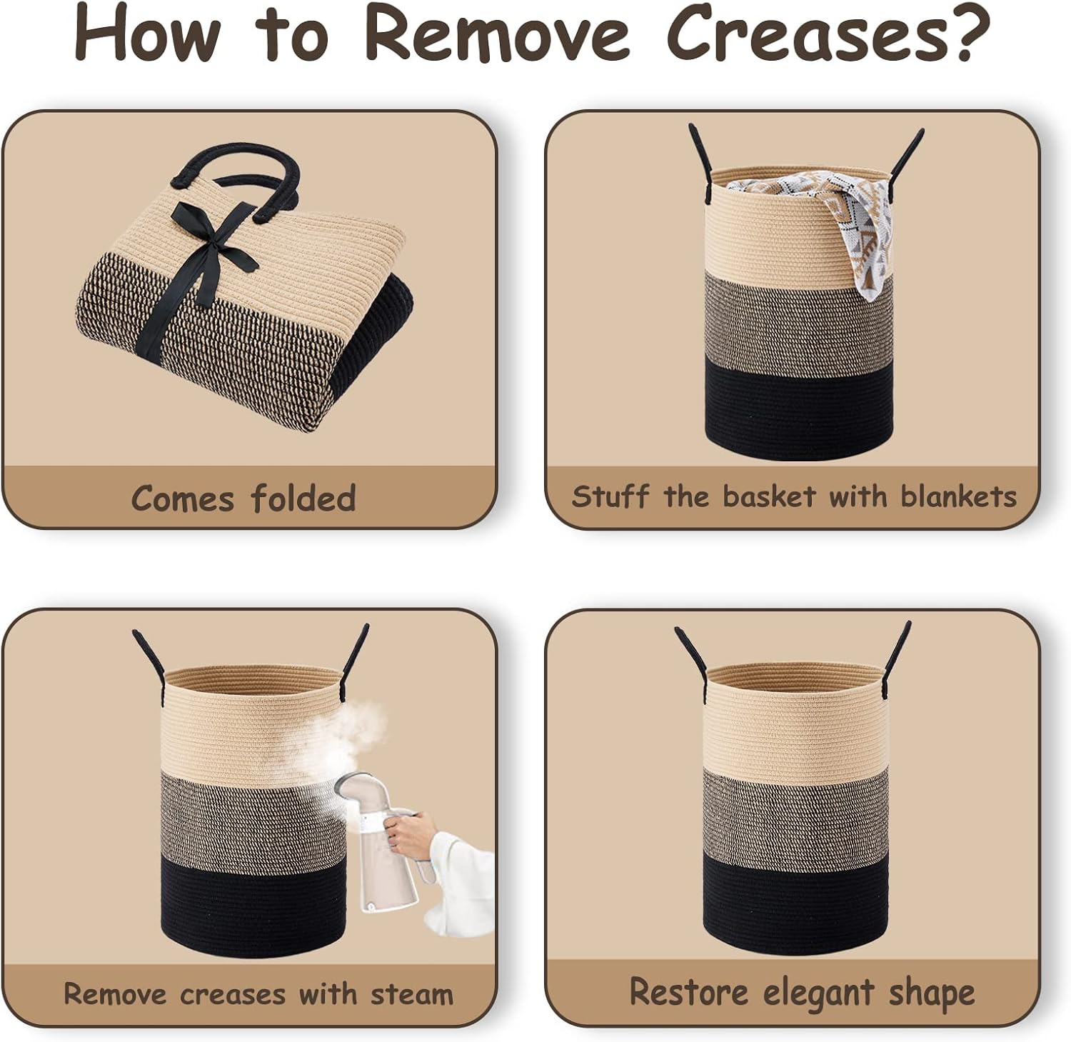 • ❤【Restore Elegant Shape】 To improve shipping efficiency, foldable woven rope hampers are packed compactly. You can put some blankets or small quilts in it and give it some time to regain its shape. Iron is a great idea to remove the creases.