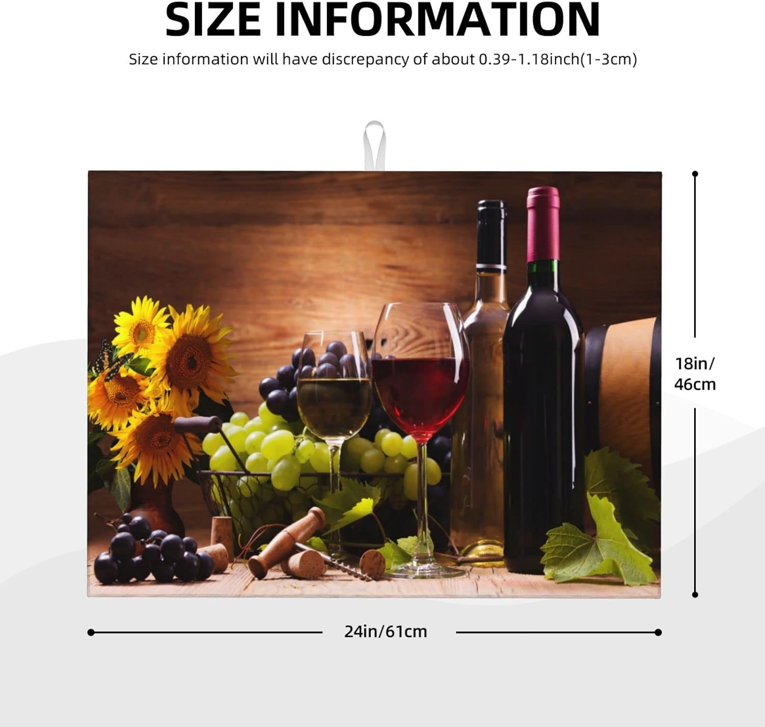 • Perfect Size & Design - SIZE - 24 x 18 Inch/61 x 46 cm. This wine dish mat provides ample surface area for holding pots, pans, glasses, and utensils. The extra large size allows you to store all of your dishes without needing another dish mat or dishwasher.Reverses To A Solid Color, Absorbent, Non-Slip, Reversible, Dish Drying Mats Can Hold A Lot Of Tableware In Your Kitchen