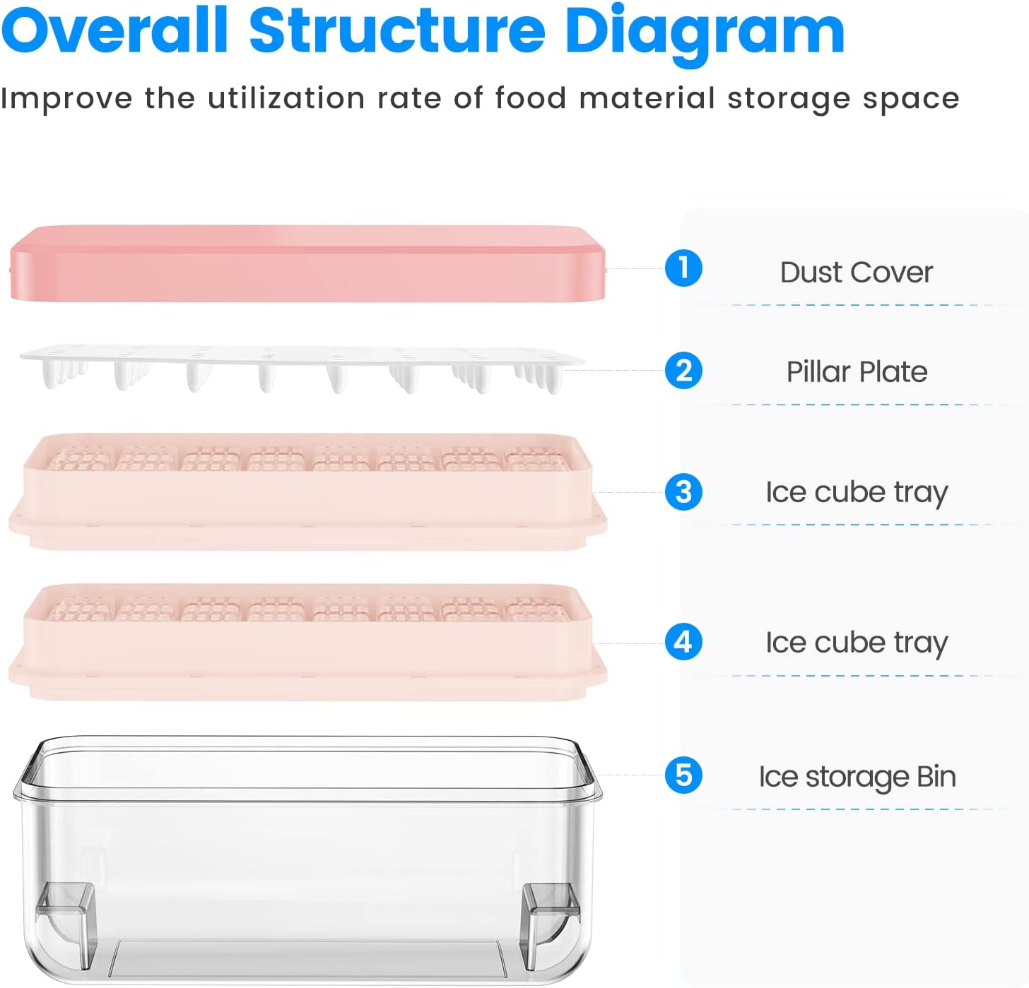 • Easy to Release:This ice cube tray uses a push type to quickly release ice cubes. Simply place the ice tray upside down on the ice bin, close the lid and press the middle of the lid with both hands to unmold easily. Do not overfill with water. Twisting the tray, or waiting a few minutes at room temperature is more conducive to releasing the ice.Our products are protected by patents under US D1,006,068 S & US D971,684 S