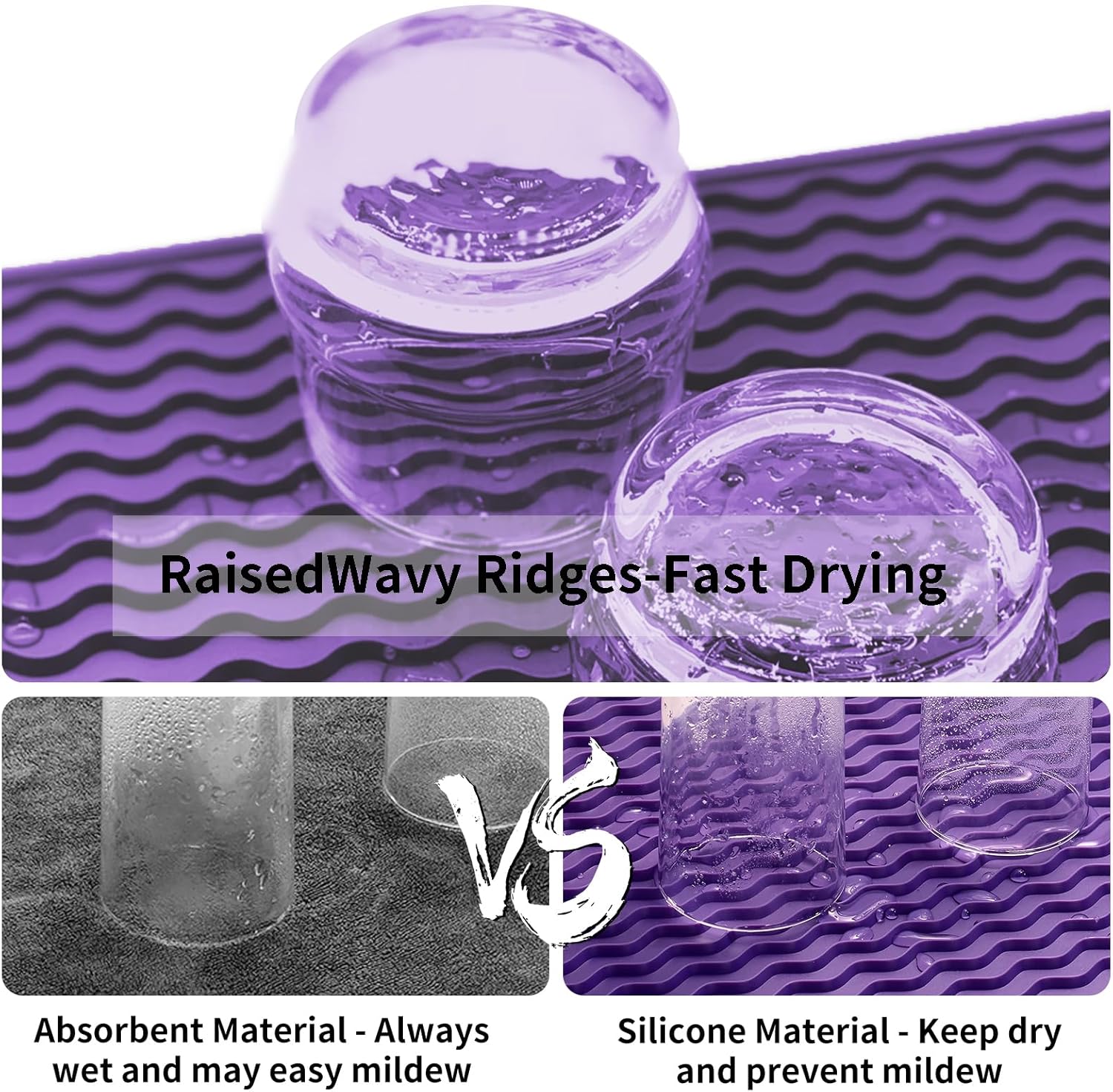 ZLR Silicone Dish Drying Mat for Kitchen Counter, Eco-Friendly Fast Dry Dish Mat, Easy Clean Multi Usage Drying Matt, Heat Resistant Trivet, 6" x 12" Extra Small, Meadow Violet
