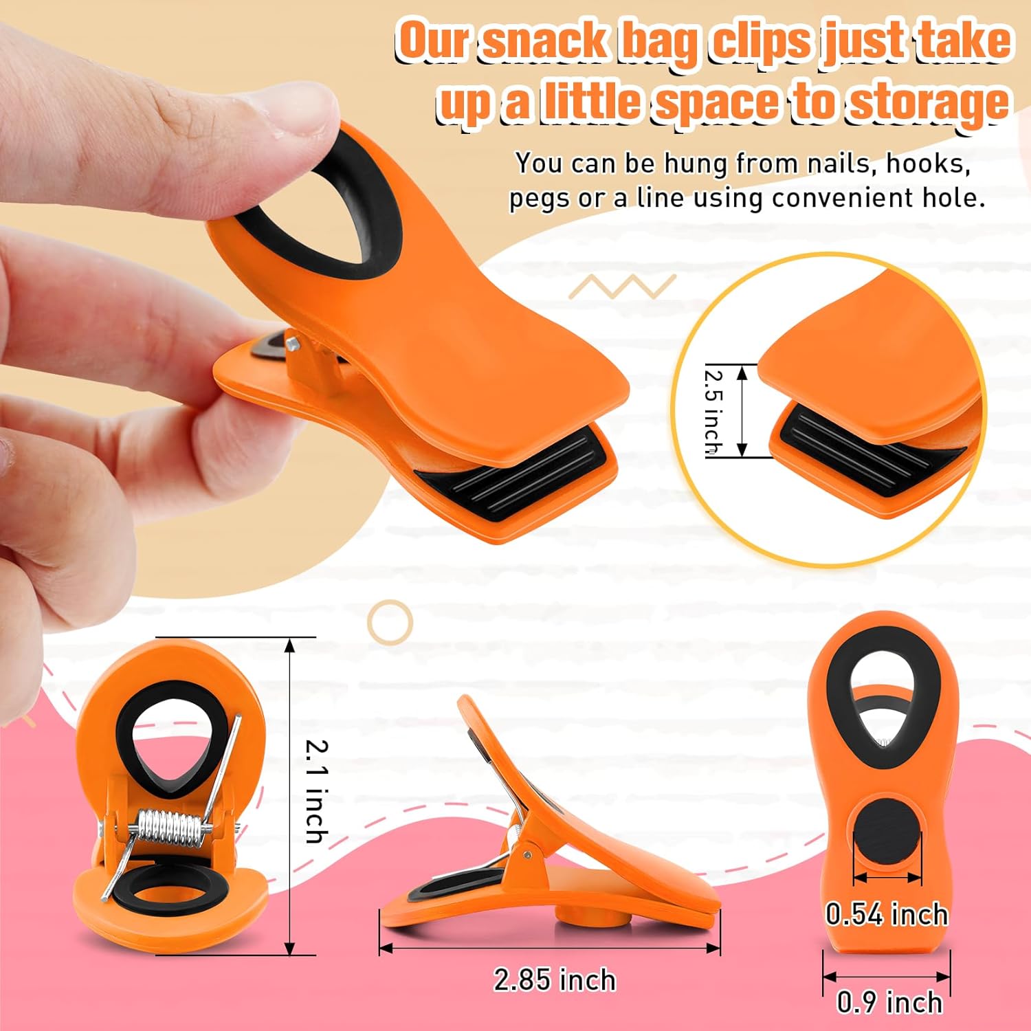 • Hang easily: the magnetic chip bag clip features a hole design in the handle part, you can hang it on the wall or any other place with a hook or a peg nail, save your space in storage room and kitchen