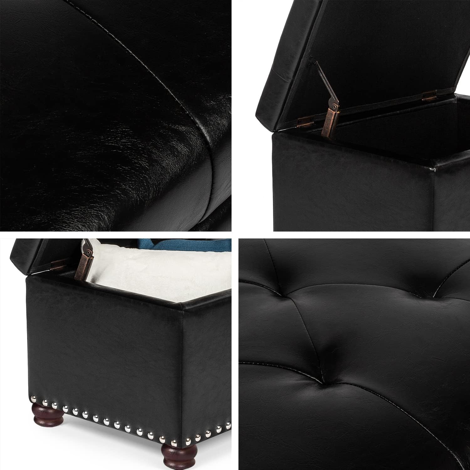 24'' Leather Storage Ottoman Rectangular Foot Rest Stool with Nailhead Trim Toy Chests & Storage Room Organizer for Bedroom Living Room(Black)