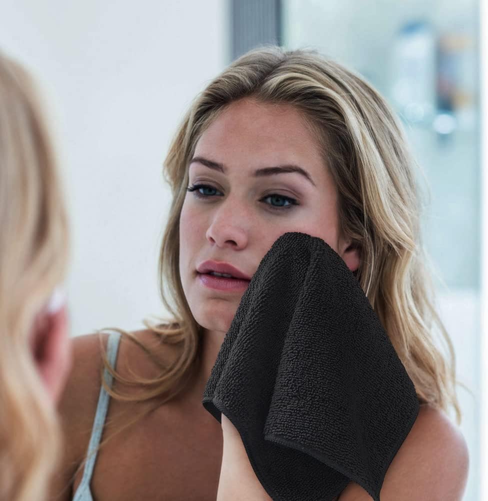 Orighty Washcloths Bulk Towels Set 50 Pack, Highly Absorbent and Super Soft Microfiber Fingertip Towels, Multi-Purpose Wash Cloths for Bathroom, Hotel, Spa, and Gym, 12x12 Inch, Black
