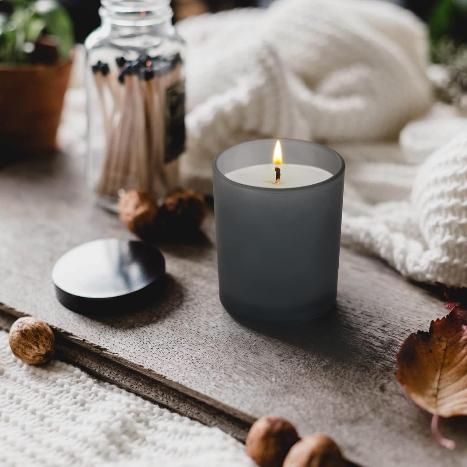 Thick Candle Jars for Making Candles 12 Pcs, 7 OZ Empty Jars with Wood Lids for Candle Making, Sample Container, Frosted Grey