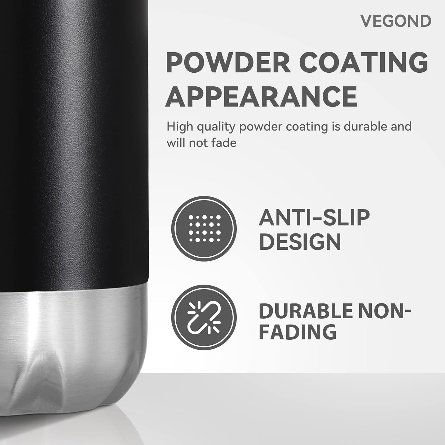 • All Day Heat / Cold Preservation : VEGOND double wall vacuum sports water bottles feature advanced heat preservation technology, keep your favorite drinks cold for up to 24 hours and hot for up to 12 hours. You can bring hot water, ice water, coffee, drinks with you. A 1.25”-diameter mouth accommodates small ice cubes and chopped fruits. The metal water bottle feature humanized design allows you to enjoy coolness in the hot summer and warmth in the cold winter