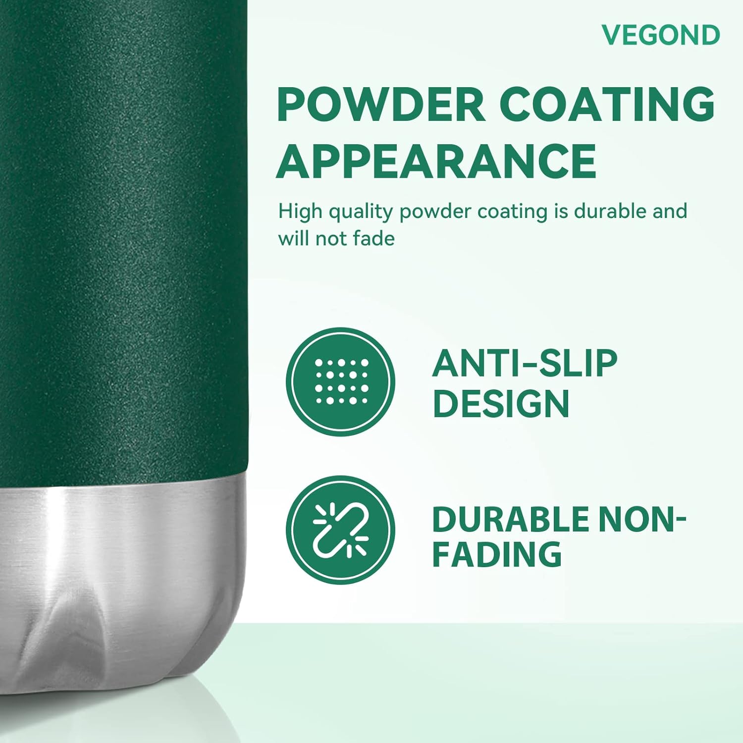 • All Day Heat / Cold Preservation : VEGOND double wall vacuum sports water bottles feature advanced heat preservation technology, keep your favorite drinks cold for up to 24 hours and hot for up to 12 hours. You can bring hot water, ice water, coffee, drinks with you. A 1.25”-diameter mouth accommodates small ice cubes and chopped fruits. The metal water bottle feature humanized design allows you to enjoy coolness in the hot summer and warmth in the cold winter