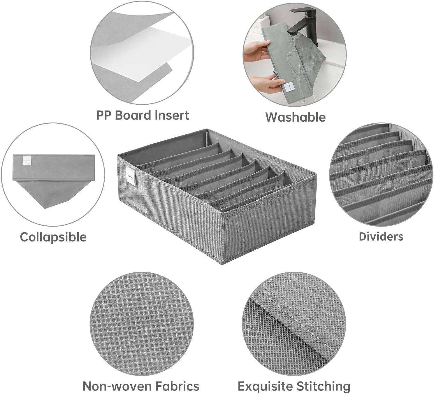 • 【8 Grids Divider】Each wardrobe organizer is divided into 8 separate grids, one grid, and one item, which can keep your clothes and closet neat and tidy and easy to pick and place in a short time. Plus, the foldable and stackable design can greatly improve the utilization of wardrobe space.