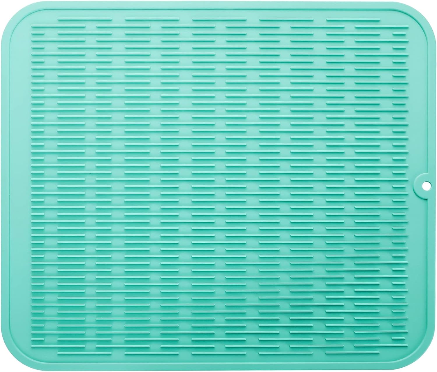 Silicone Dish Drying Mat for Multiple Usage,Easy clean,Eco-friendly,Heat-resistant Silicone Mat for Kitchen Counter or Sink,Refrigerator or Drawer Liner Mint 2XL 24 inches x 18 inches