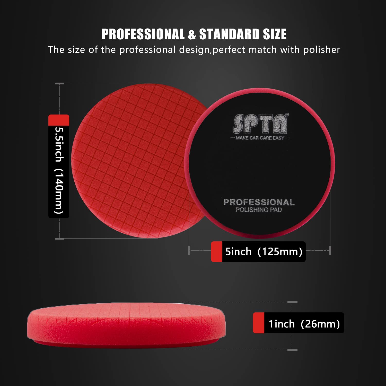 Red Finish Polishing Pads, Buffing Pads, SPTA 1Pcs 5.5 Inch Face for 5 Inch 125mm Backing Plate Compound Buffing Sponge Pads for Car Buffer Polisher Compounding, Polishing and Waxing-FPTSS5R