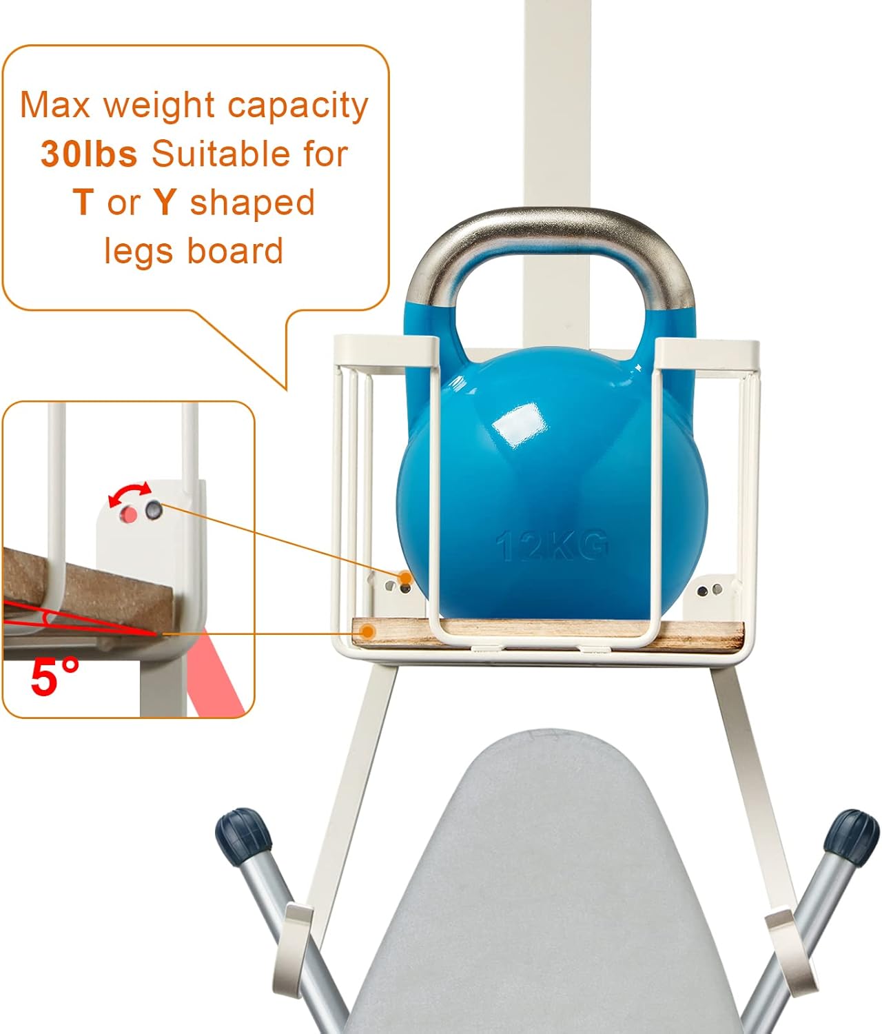 TJ.MOREE Over The Door/Wall Mount Ironing Board Hanger, Laundry Room Iron and Ironing Board Storage Holder, White