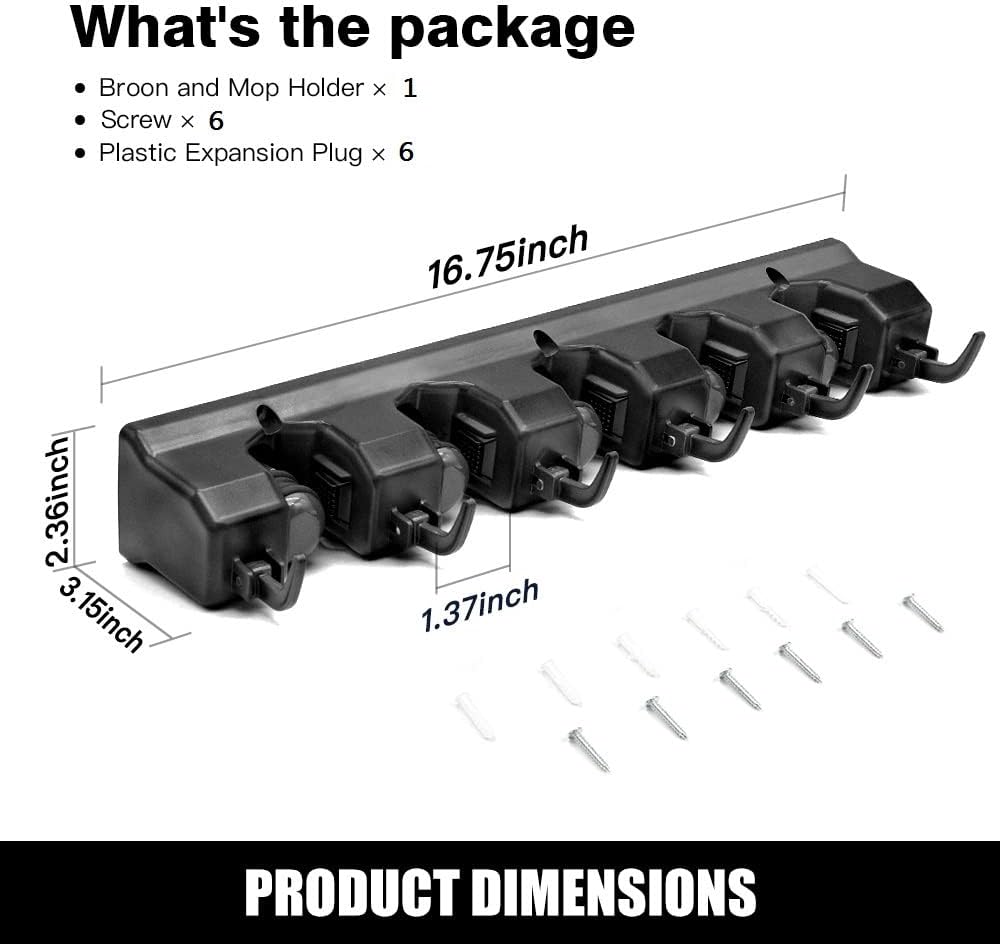 • Heavy Duty: Mop holder grip everything tightly and securely. Each rolling ball holds up to 6.5 pounds of weight(smooth rod is up to 3 pounds), holder can hold up to about 11 tools in total. Made of high quality ABS and slots and screws.We upgraded our products after 2018 July 1st, and we improved the quality of this products that are easy-to-drop. Now the products can grip everything tightly and securely.