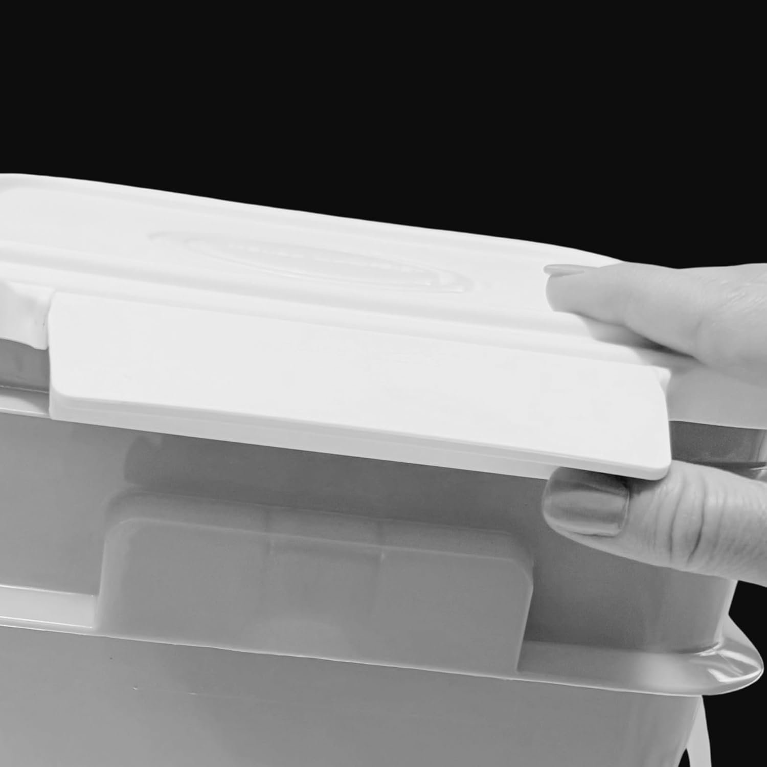 House Naturals 4 Gallon Square Food Grade Bucket Pail with Plastic Handles and Lid (Pack of 3) Made in USA containers (RED-White Lids)